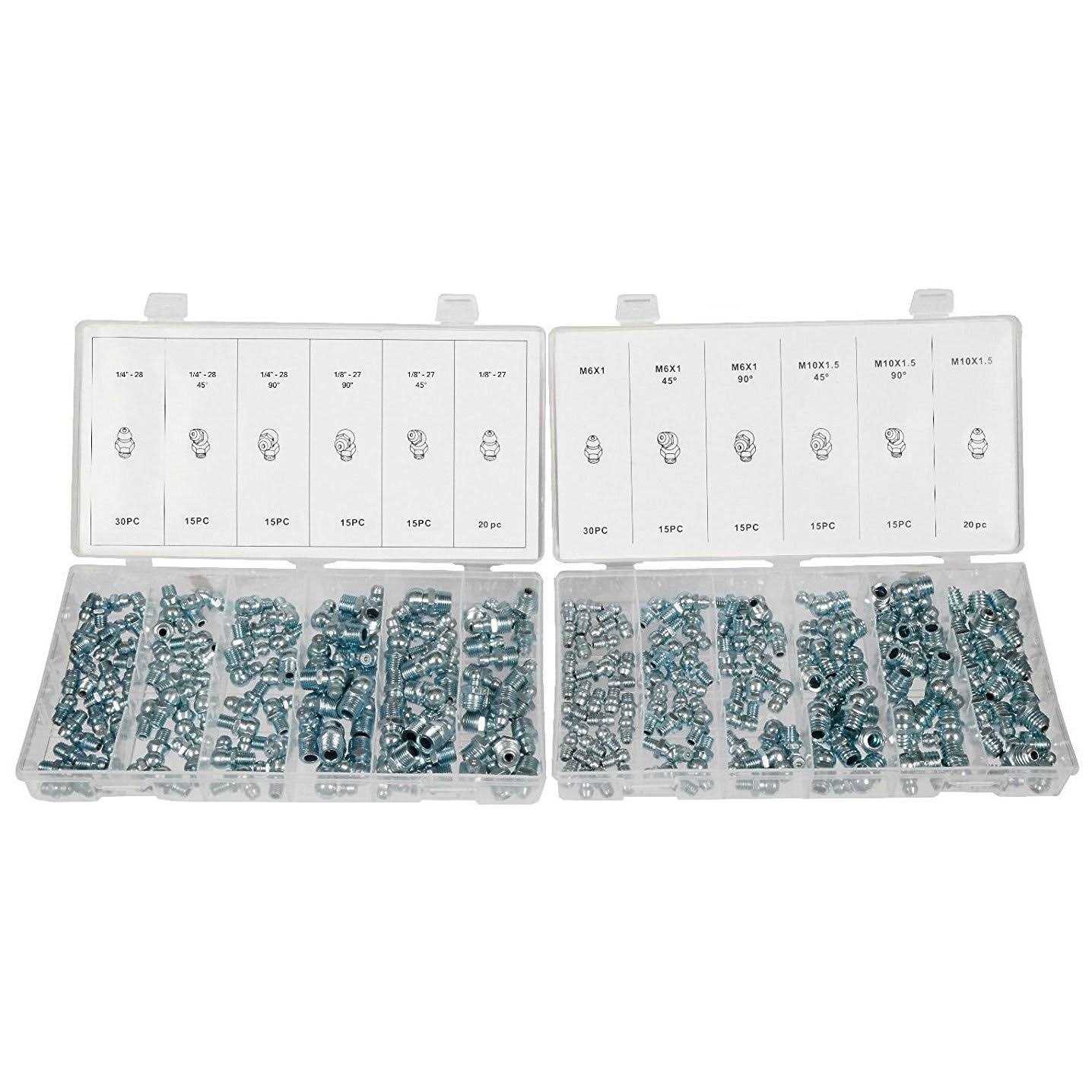 Sae & MM Hydraulic Grease Fitting Kit, 220 Piece Straight and Angled