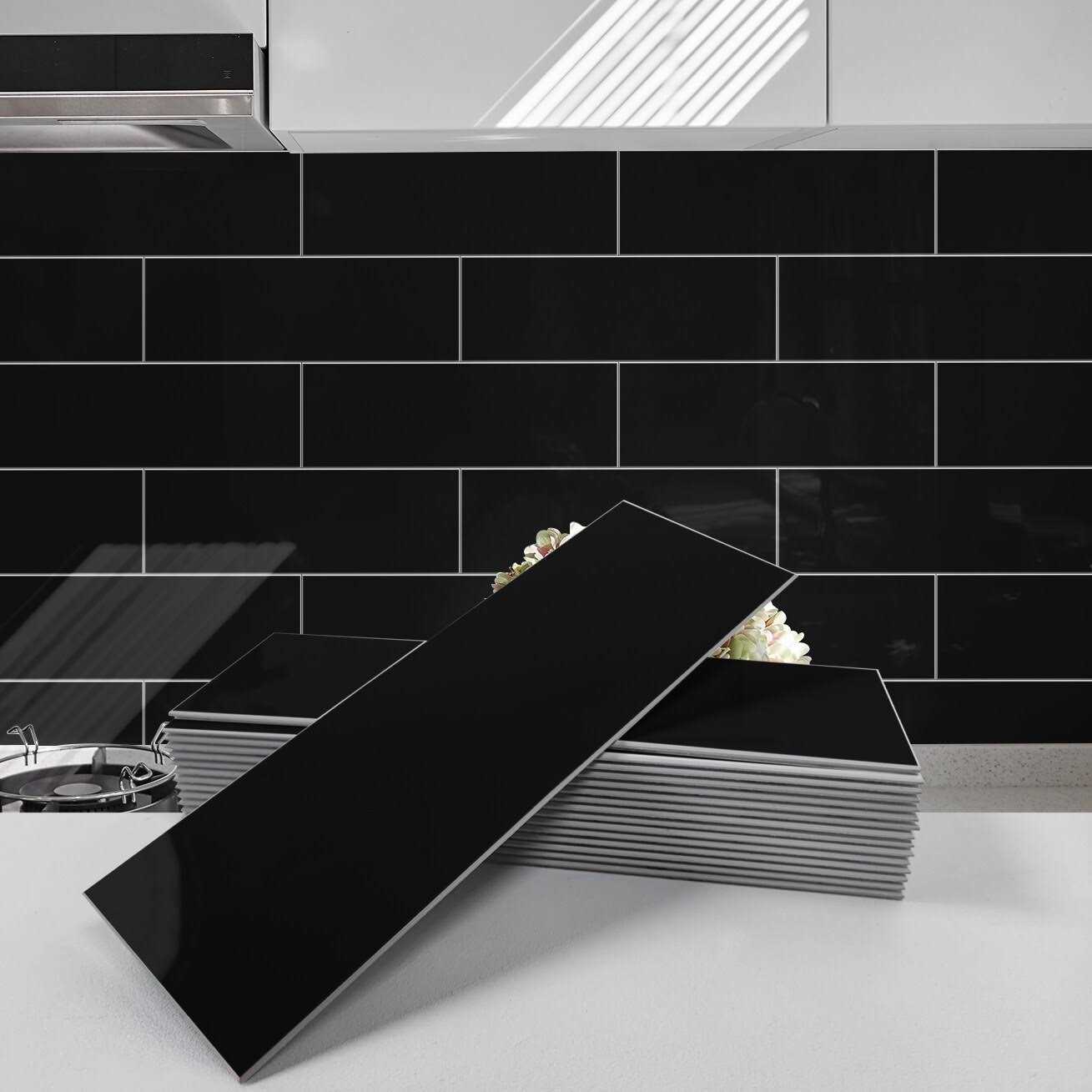 Avant Decor Florence Individual Black Marble 4 in. x 8 in. Vinyl Peel and Stick Tile Backsplash