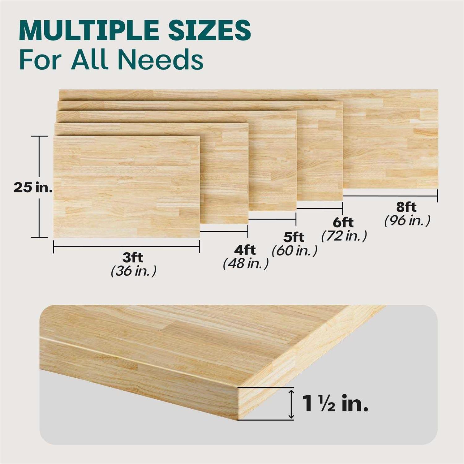 Bme Unfinished Hevea Solid Hardwood Butcher Block Countertop for Diy Wood Table Top