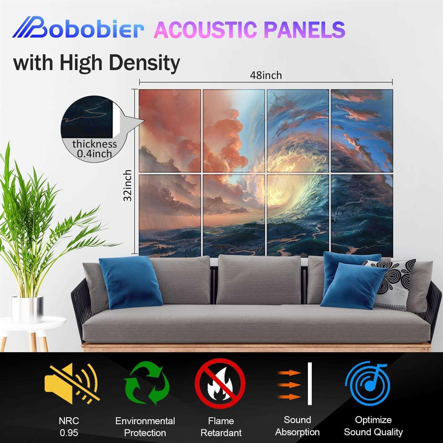 Bobobier Art Acoustic Panels with Self-Adhesive,48 x 32Inches Acoustic Wall