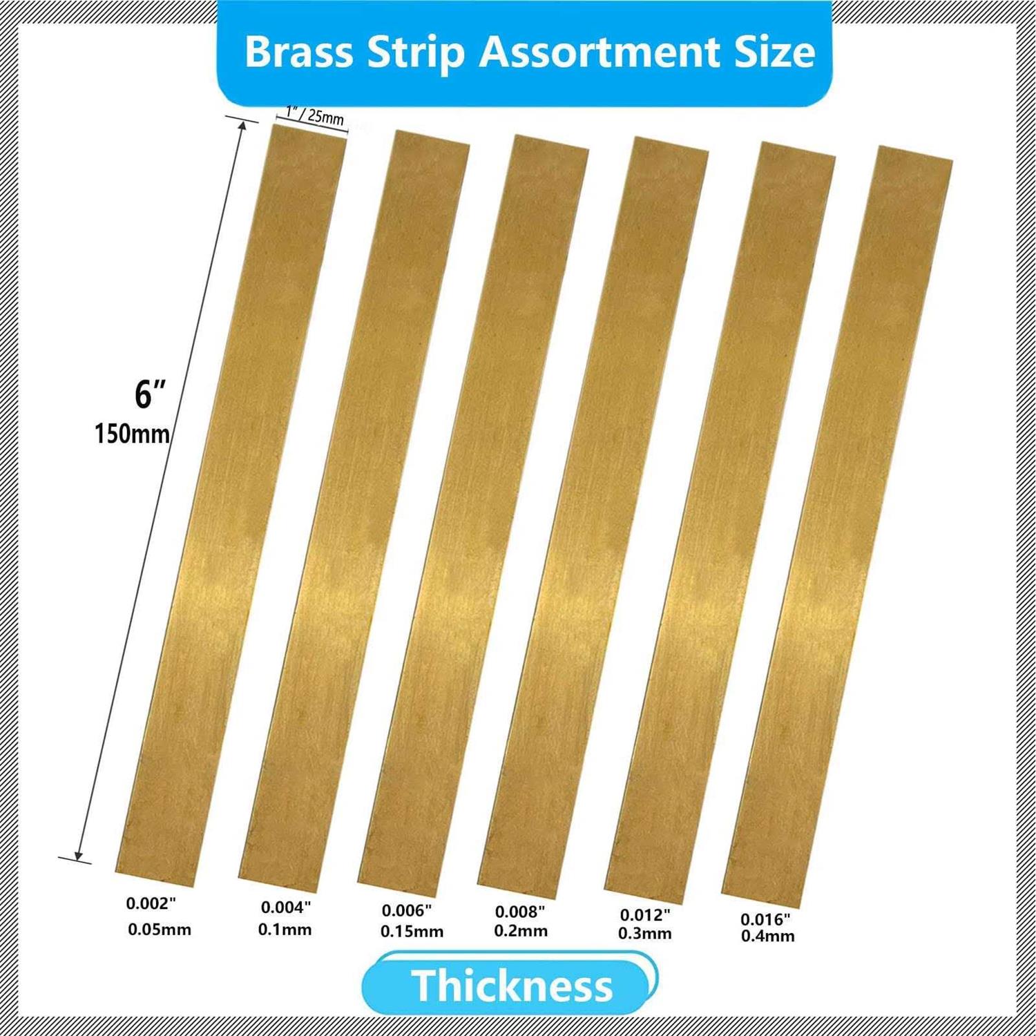 Brass Strip, Brass Shim Stock Assortment, 1 Width x 6 Length, 0.002, 0.004, 0.006, 0.008, 0.012 and 0.016 Thickness