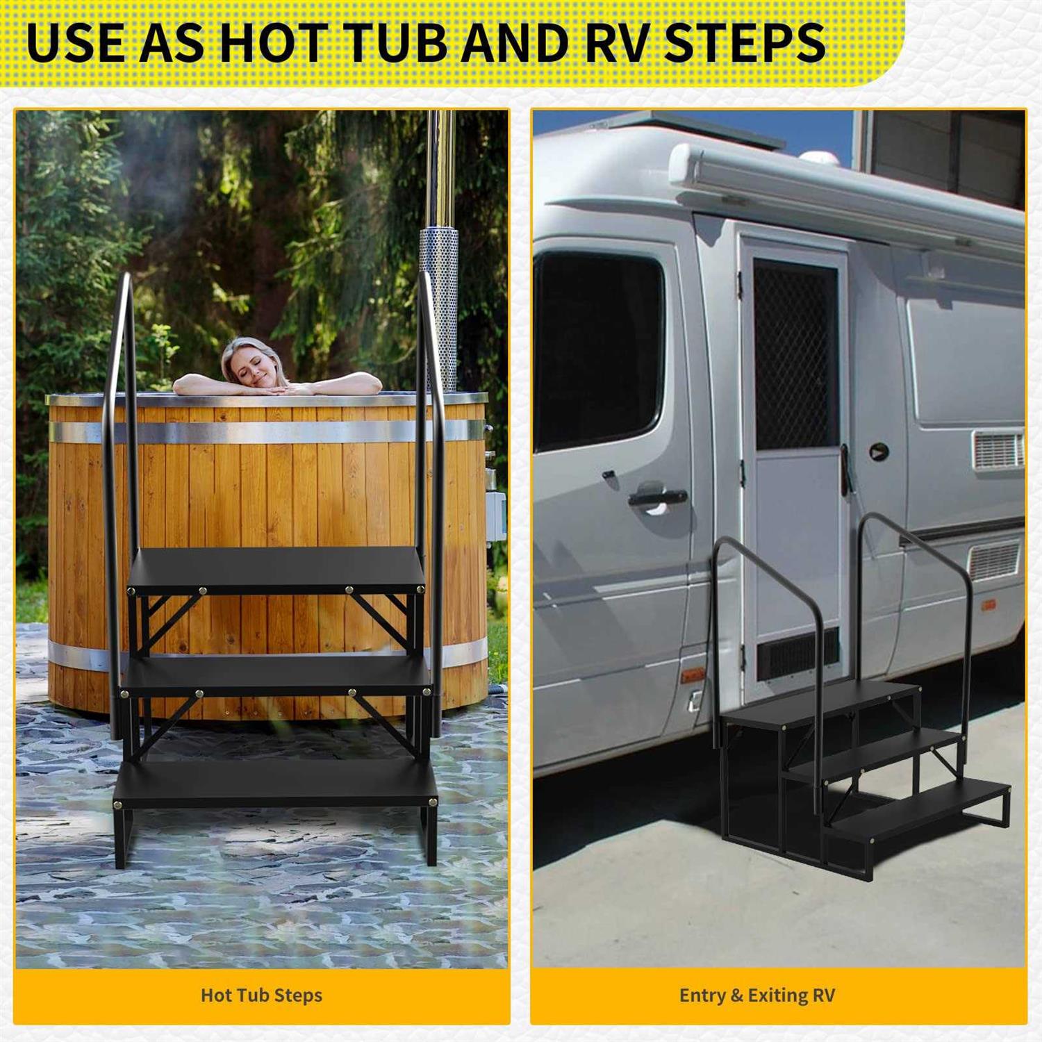 Coocure Updated Rv Steps with handrail Mobile Home Stairs Steps Outdoor Hot tub Steps with handrail. Portable Stairs for 5th Wheel Rv
