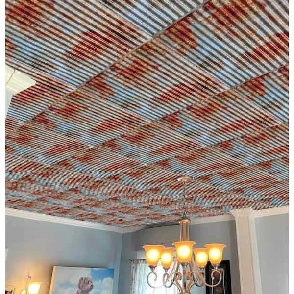 Dundee Deco Falkirk Perth Old Tin Roof 2 ft. x 2 ft. Decorative Rusty Lay In Ceiling Tile