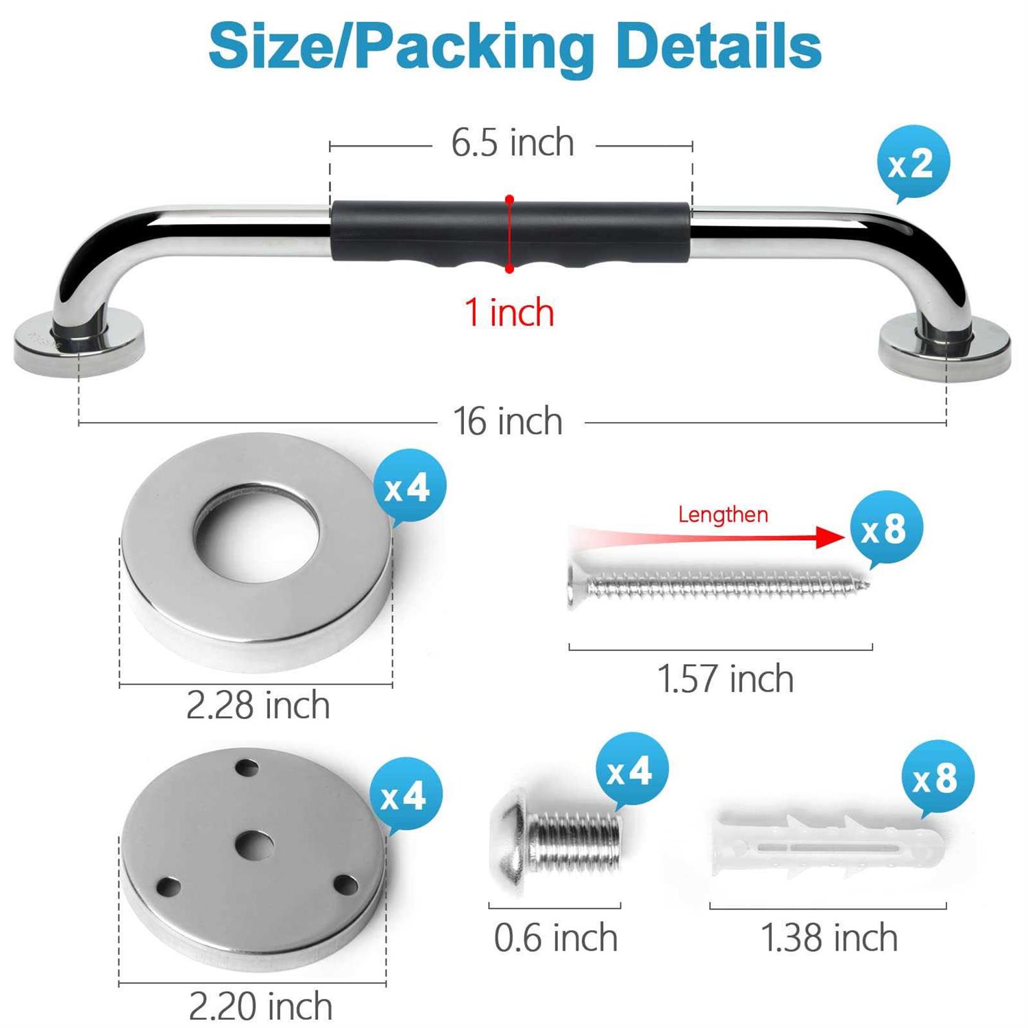 Safety Grab Bars for Bathroom 2 Pack, 16 Inch Anti-Slip Grab Bars for Bathtubs and Showers