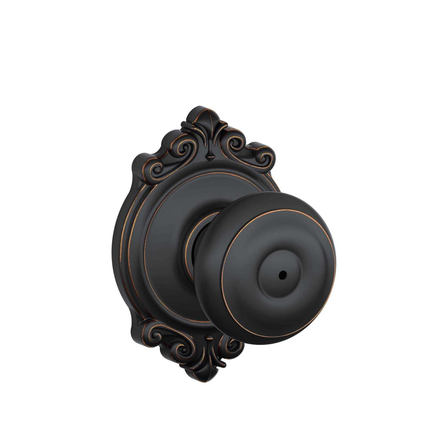 Schlage Georgian Privacy Door Knob Set with Decorative Brookshire Trim F40GEO