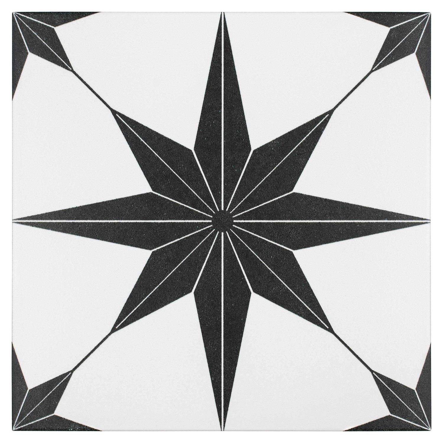 SomerTile Stella Nero Encaustic 9-3/4 x 9-3/4 Porcelain Floor and Wall Tile
