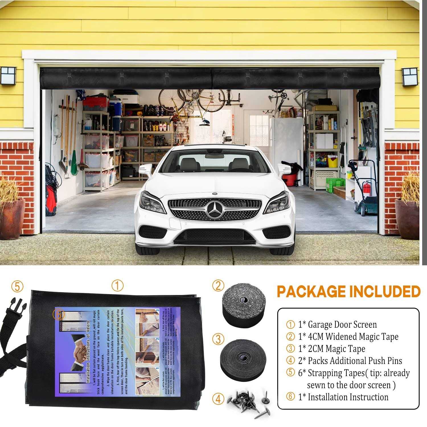 Toanel Garage Screen Doors for 2 Car 16×7 ft Heavy Duty Self Sealing Magnetic Fiberglass Mesh with 6 Roll Up Starps