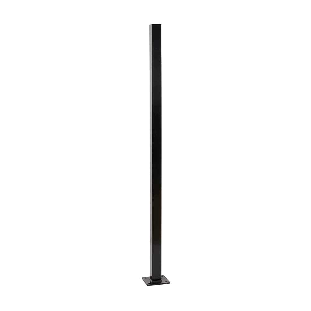 Fortress Versai 2 in. x 2 in. x Gloss Black Steel Fence Post with 5 in. Base Plate