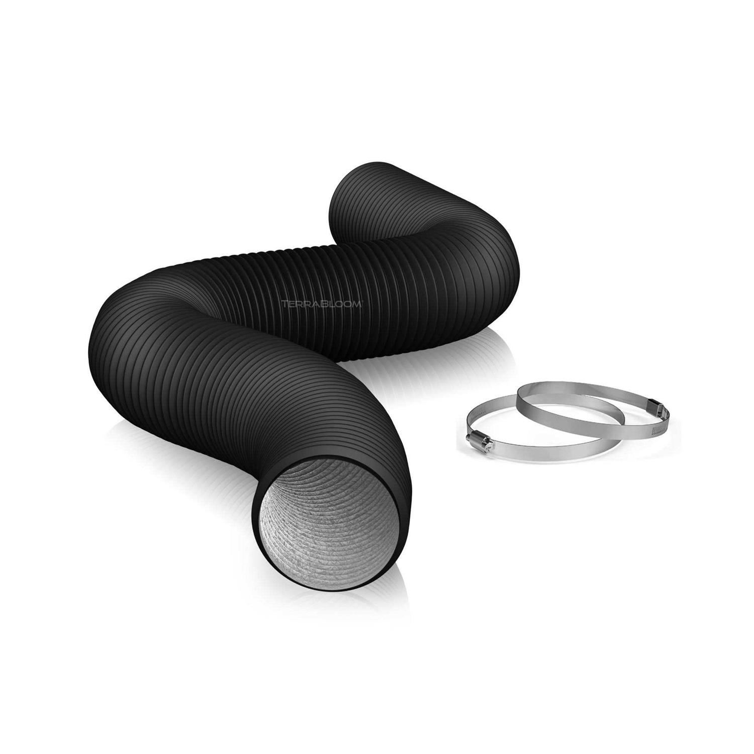 TerraBloom Flexible 8 Ducting Black Duct with 2 Clamps 4 Layer HVAC Ventilation Air Hose