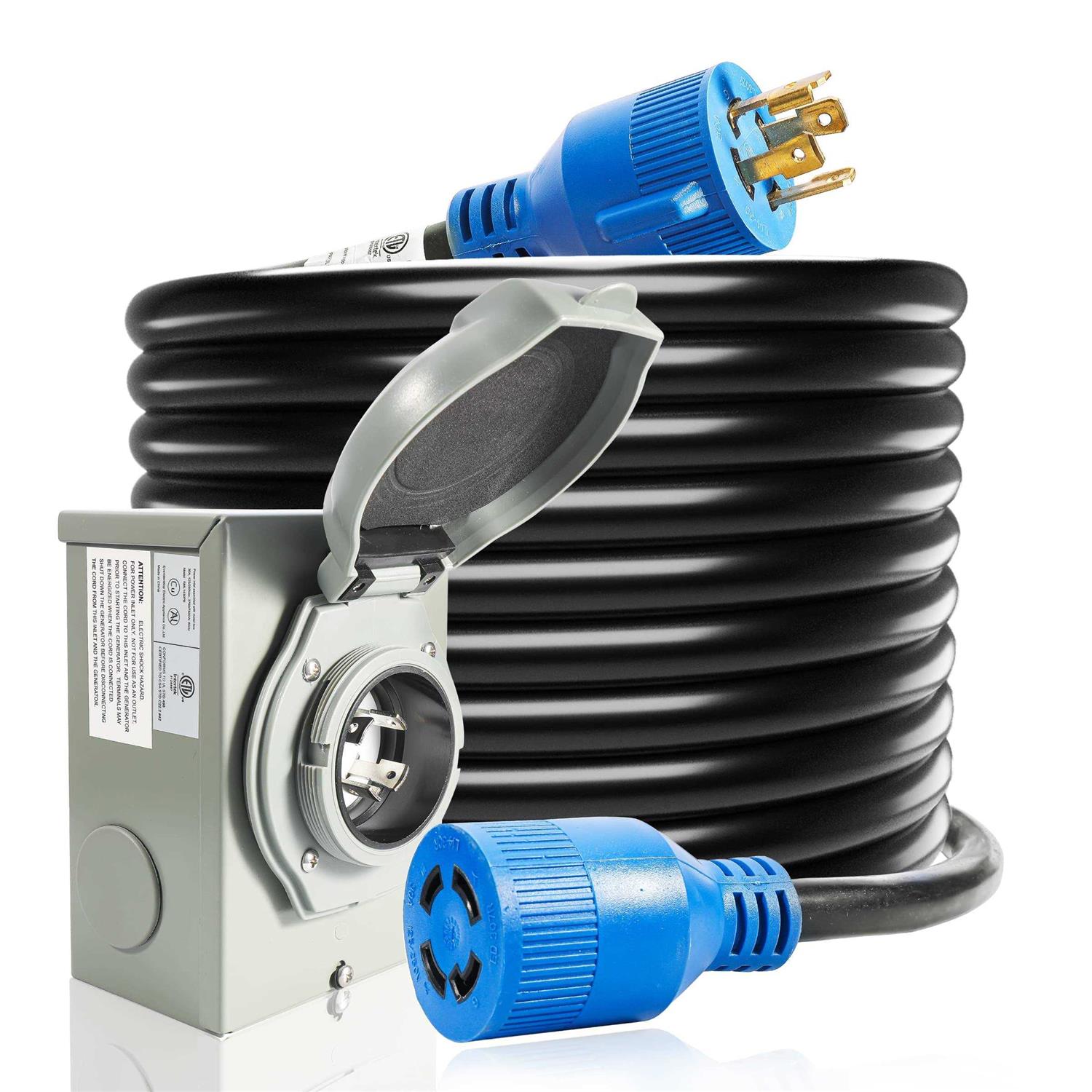 30 Amp Generator Cord and Power Inlet Box Generator Cords 30 Amp,125V/250V Generator Power Cord NEMA L14-30P to L14-30R,Twist Lock Connector