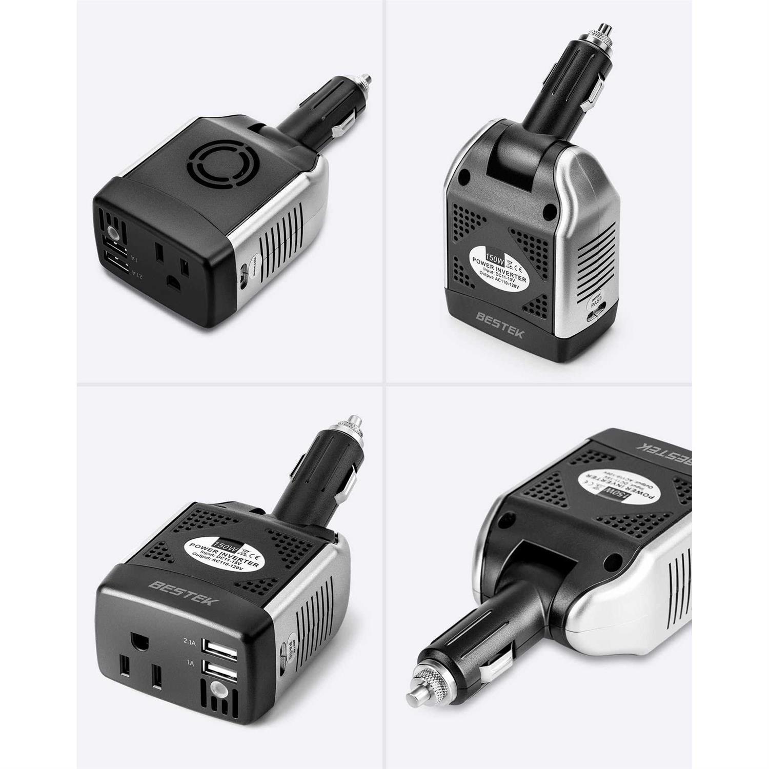 Bestek 150w Power Inverter 12V to 110V Voltage Converter Car Charger Power Adapter with 3.1a Dual USB Charging Ports
