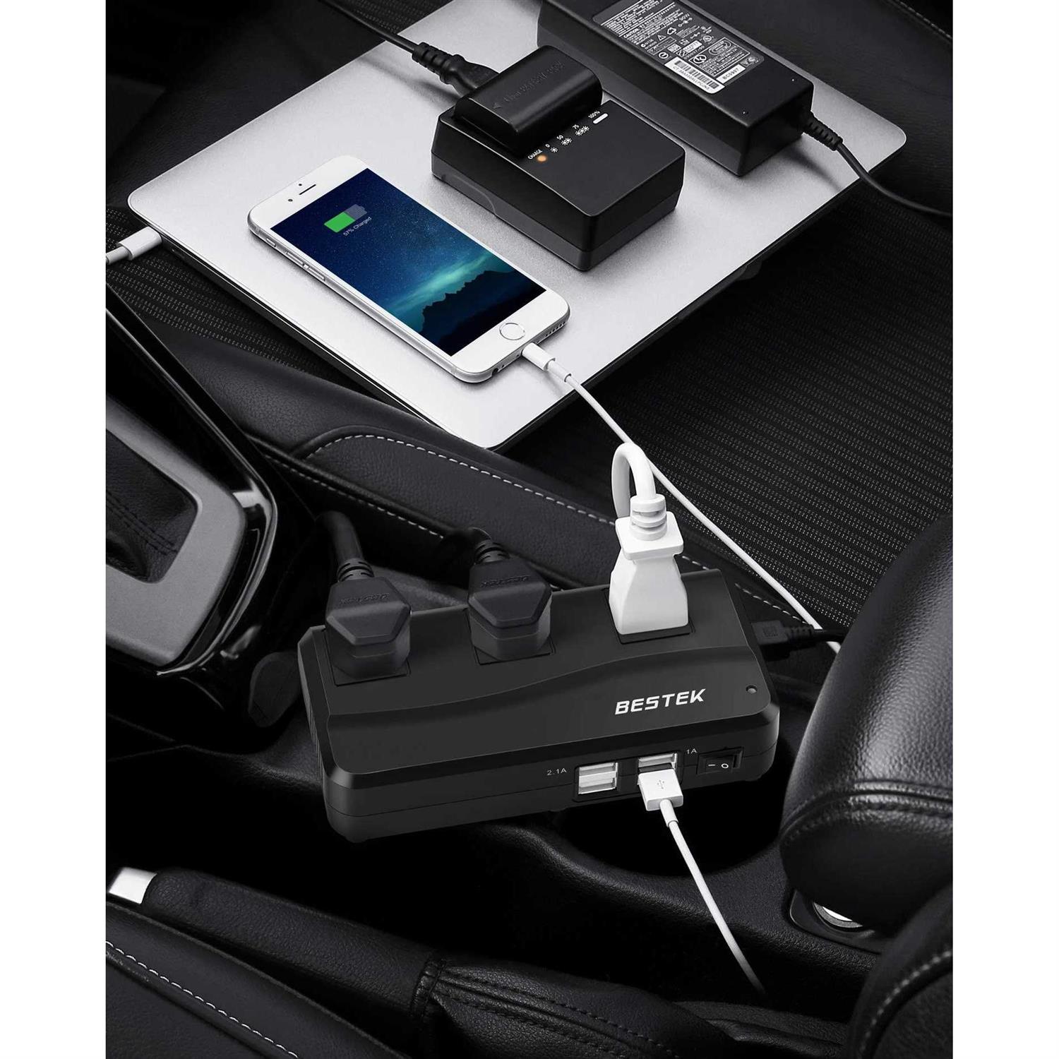 Bestek 200w Power Inverter DC 12V to 110v AC Inverter with 4.2a 4-Port USB Car Adapter