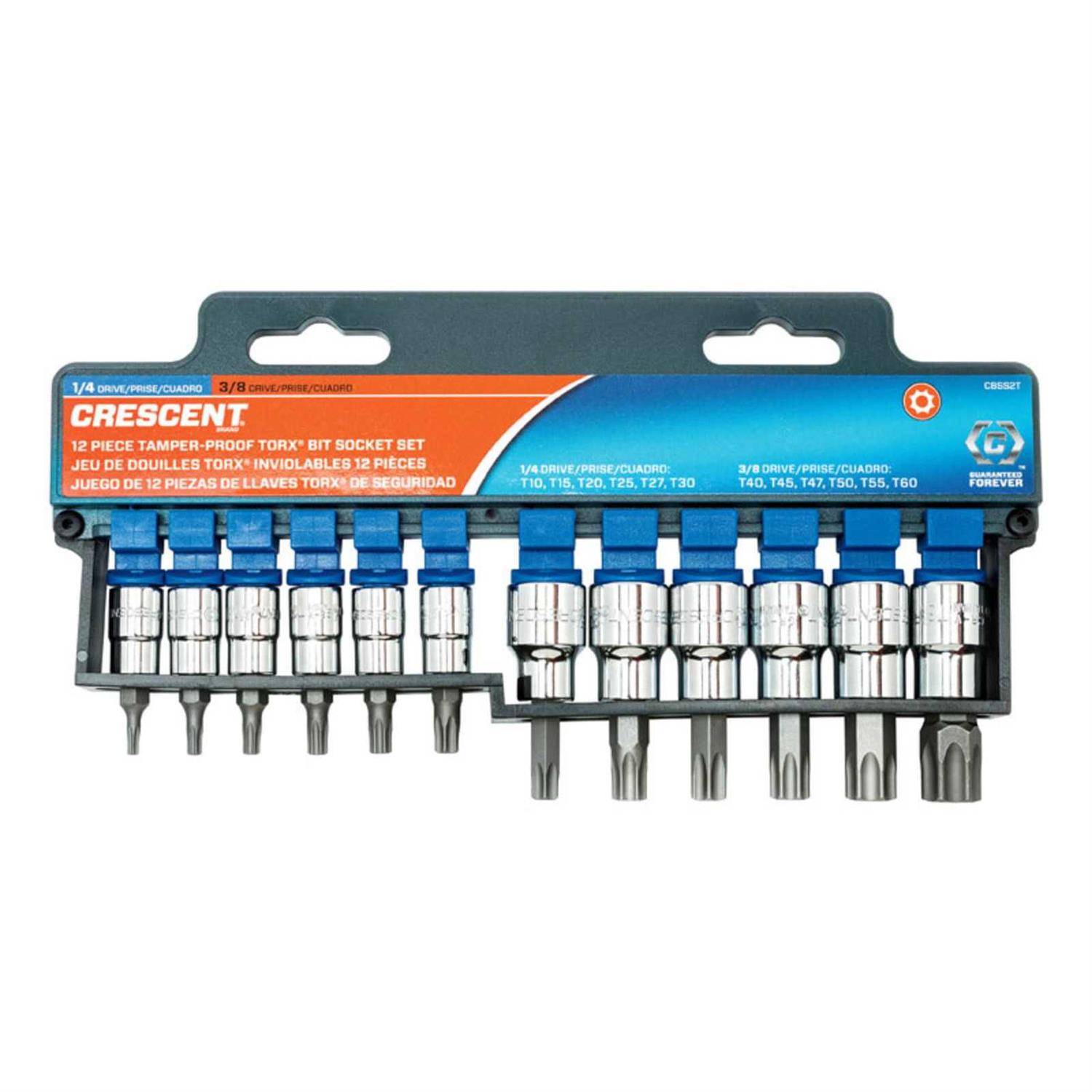 Crescent Assorted Sizes x 1/4 and 3/8 in. drive SAE 6 Point Tamper Proof Torx Bit Socket Set 12