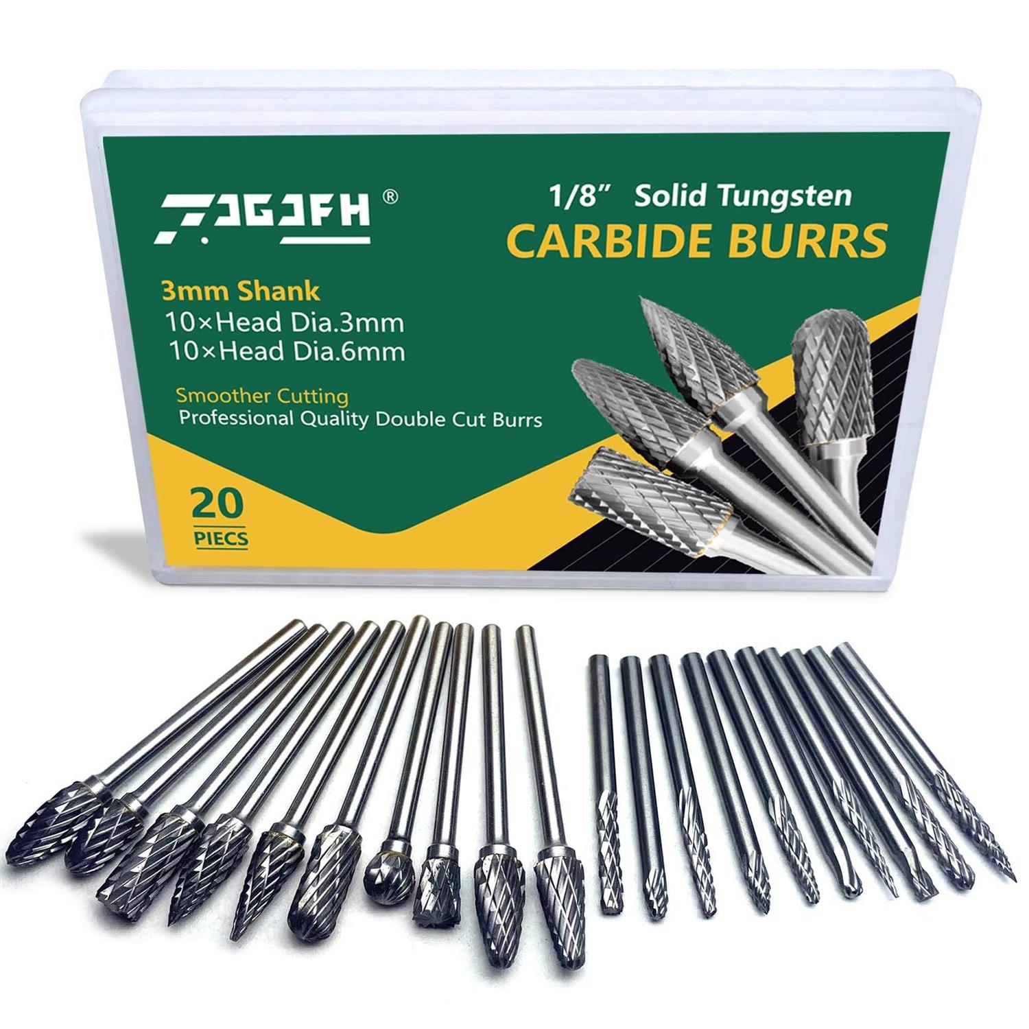 FDGDFH Carbide Rotary Burrs Set 20PC Double Cut 1/8 Shank Compatible with Dremel Wood Carving Accessories for Woodworking Drilling Engraving