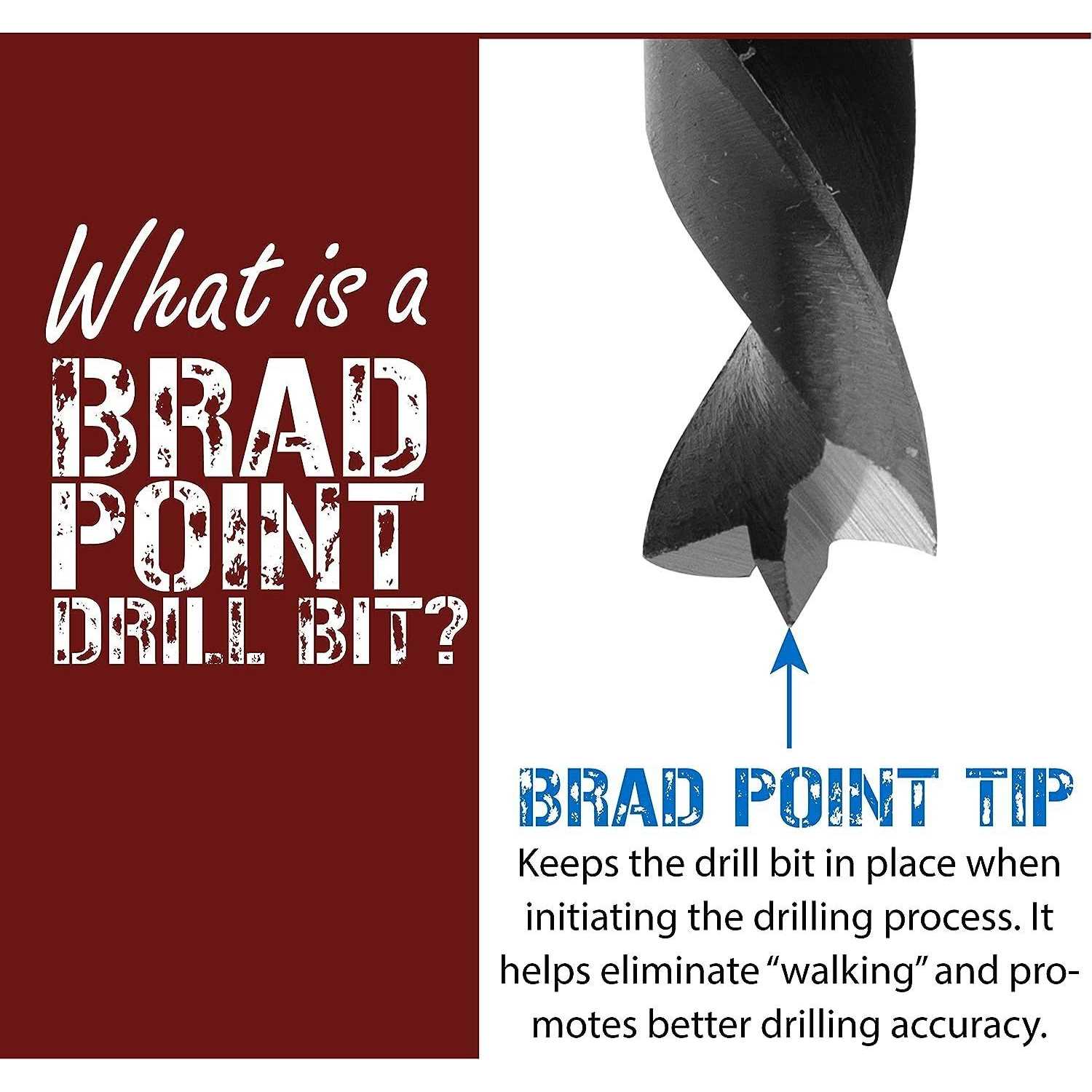 Fulton 12 inch Extra Long Brad Point Drill Bit Set with 7 Total Drill Bits Ideal