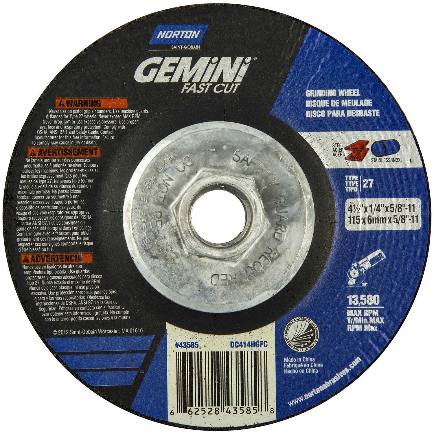 Norton 4-1/2 Type 27 Aluminum Oxide Depressed Center Wheels 66252843585