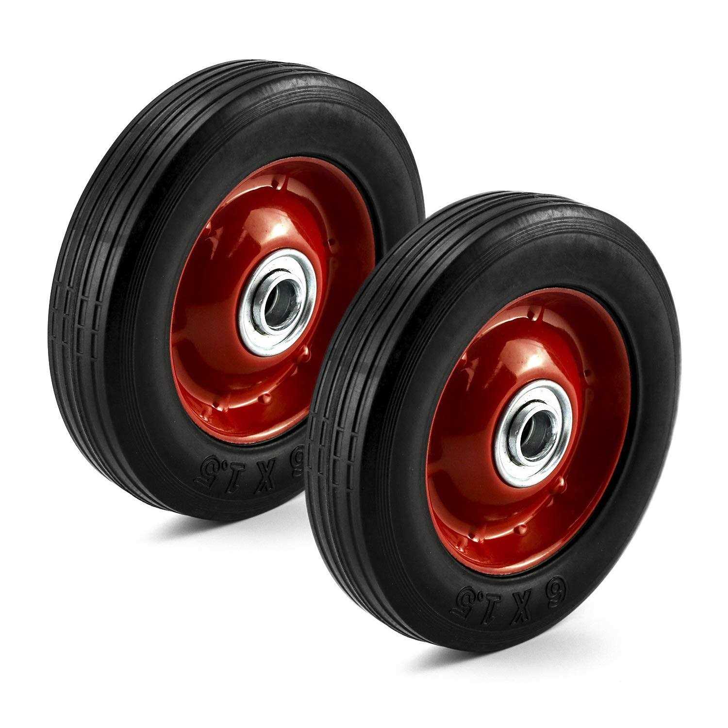 Qwork 2 Pack 6 x 1.5 Axle Premium Rubber Wheel with Ball Bearing