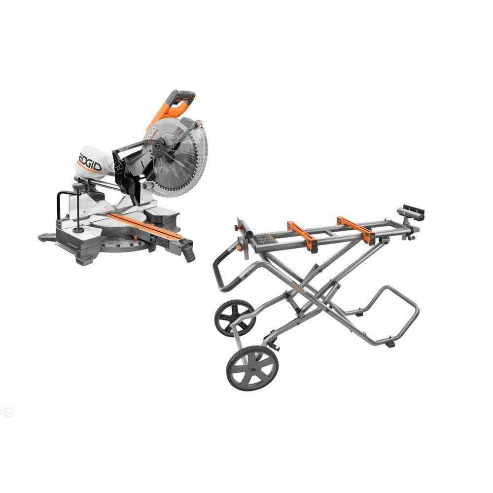 RIDGID 15 Amp 12 in. Corded Sliding Miter Saw and Universal Mobile Miter Saw Stand with Mounting Braces
