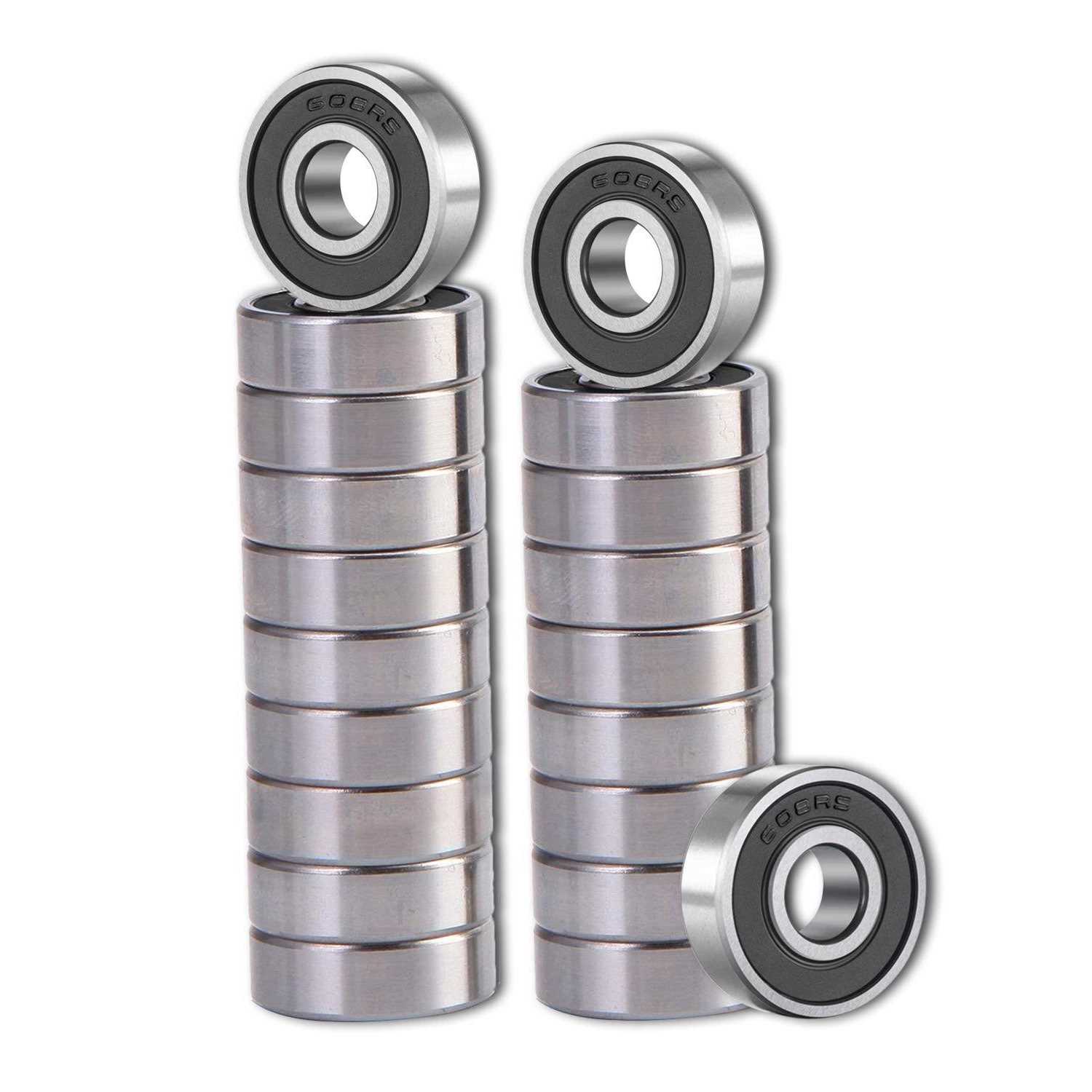SHKI 20 Pcs 608 2RS Ball Bearings – Bearing Steel and Double Rubber Sealed Miniature Deep Groove Ball Bearings