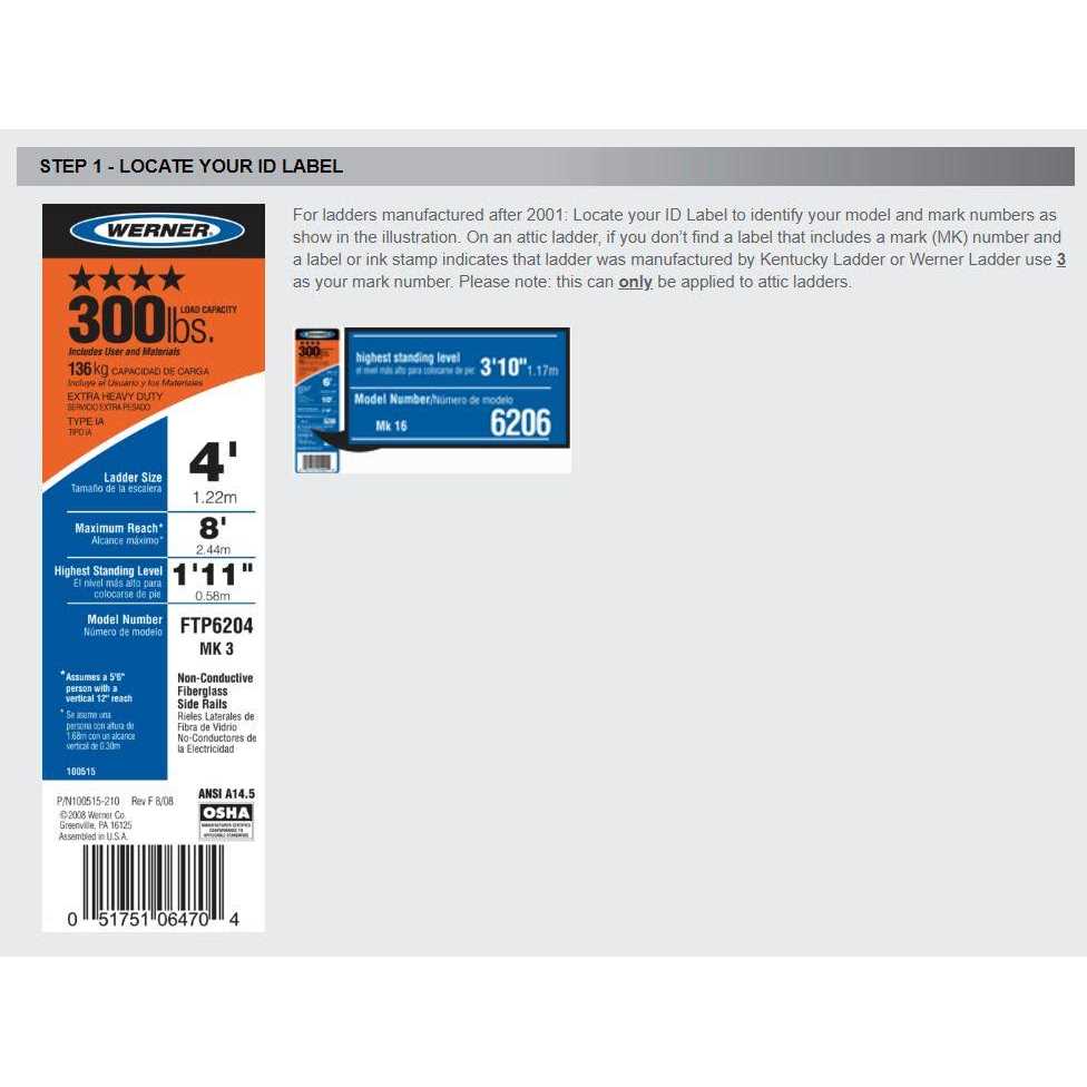 Werner LFS100 Fg Stepladder Safety and Instr. Labels