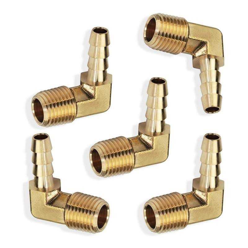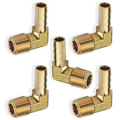 Boeray 5pcs 90 Degree Elbow Brass Hose Barb Fitting Barb Male NPT Adapter