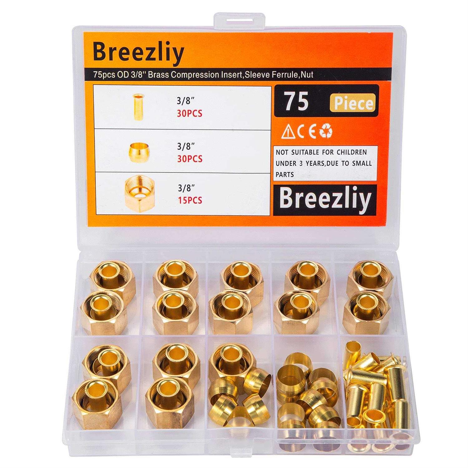 Breezliy 1/4 Inch OD Brass compression Insert,Sleeve Ferrule,Nut 75pcs