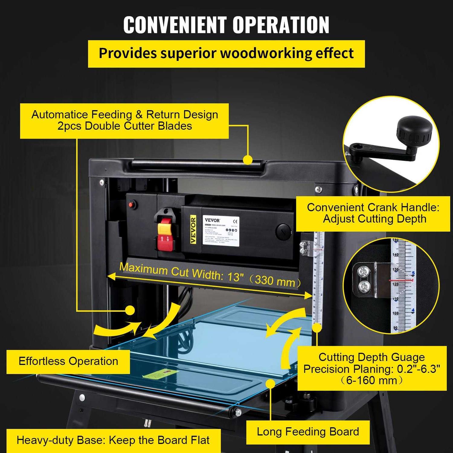 VEVOR Benchtop Planer 13 Thickness Planer 1800W 8000RPM Woodworking Planer 6m/min Planing Speed W/ Iron Stand Dust Exhaust YBJYCMC13GB9TLXZXV1