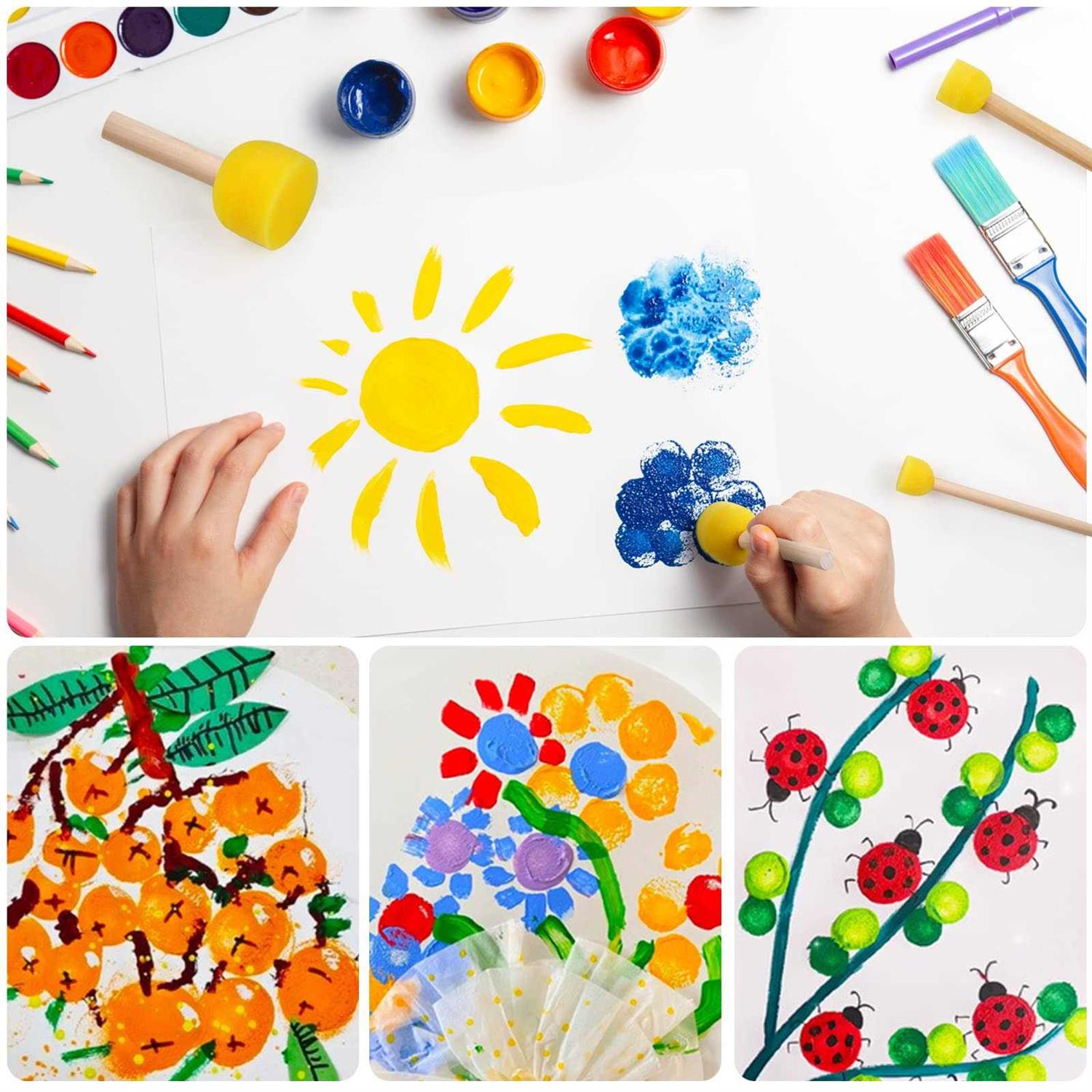 vivinin 30 Pcs Round Sponges Brush Set, Round Sponge Brushes for Painting, Paint Sponges for Acrylic Painting, Painting Tools for Kids Arts and Crafts