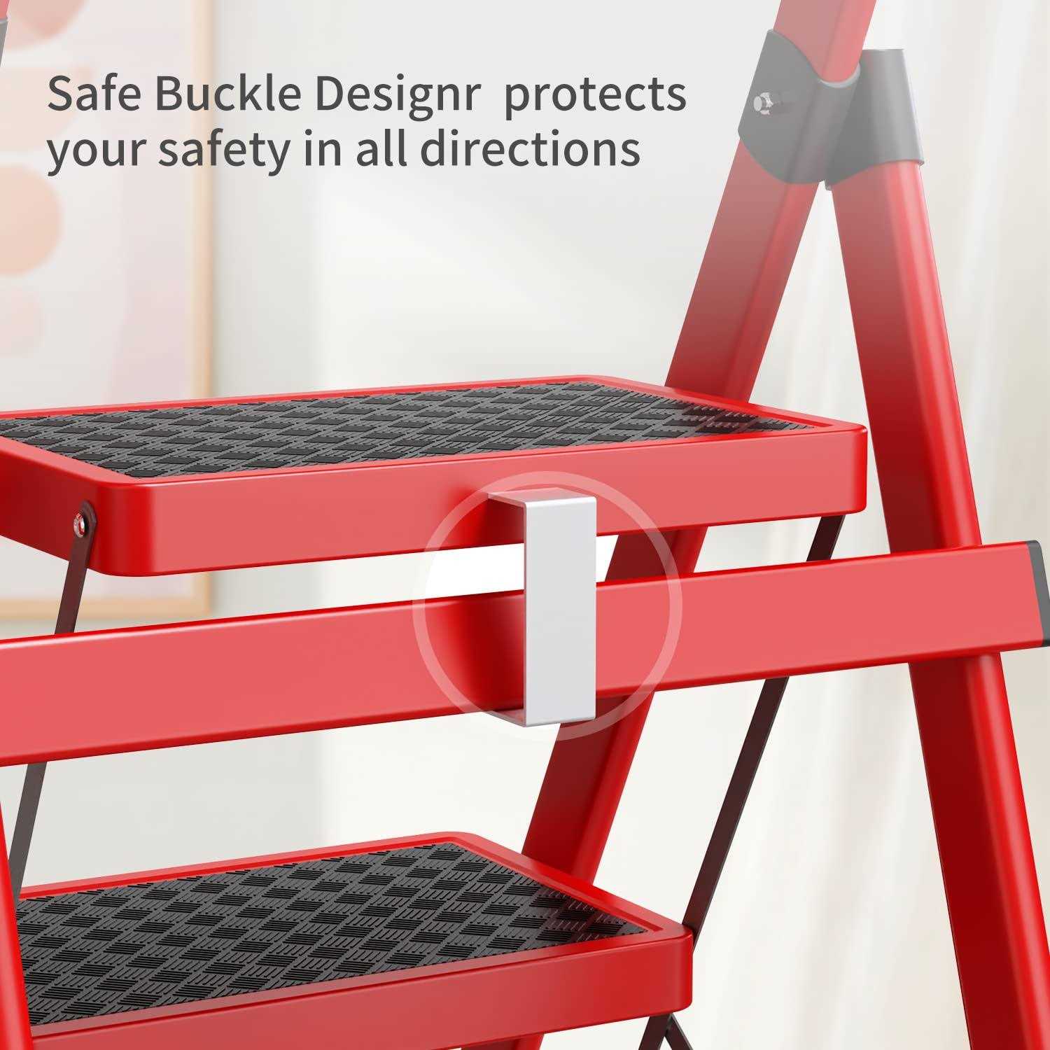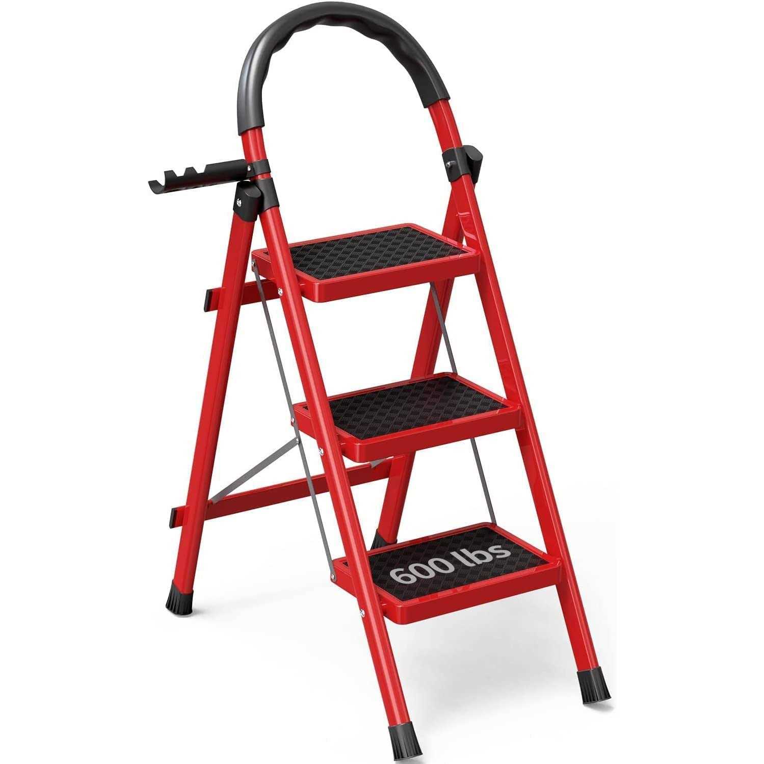 Wente mysterious force shining 3 Step Ladder-3 Step Ladder Folding Step Stool-Step Ladder 3 Step Folding with Anti-slip Wide Pedal&convenient Handgrip-Sturdy Steel Ladder Portable
