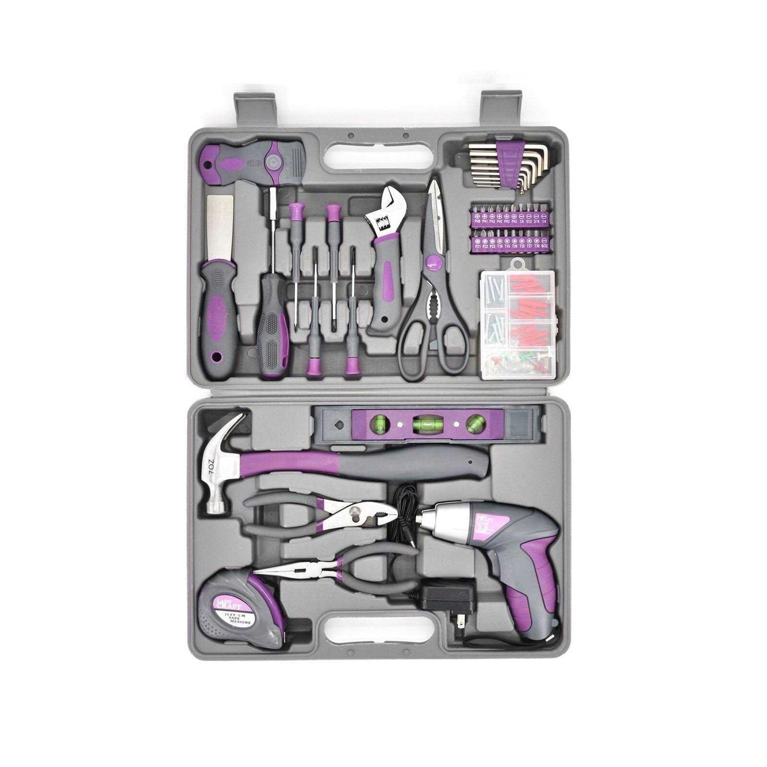 Werktough 44PCS 3.6V/4V Cordless Screwdriver Tool Kit Set Pink Color Tools Lady Tools Kit Home Repair Set Toolbox Hand Tool Kit Storage Case Gift Set