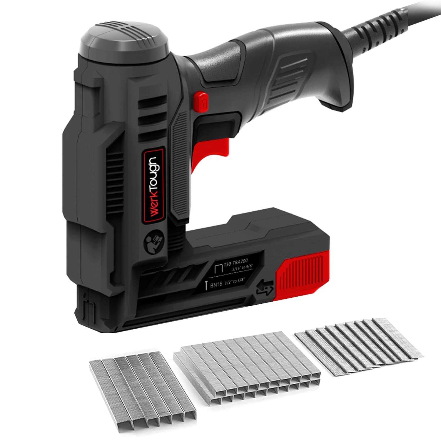 Werktough AC Electric Brad Nailer Staple Gun 2 in 1 Good for Home Decoration Leather and Carpentry 2000pcs Free Nails and Staples