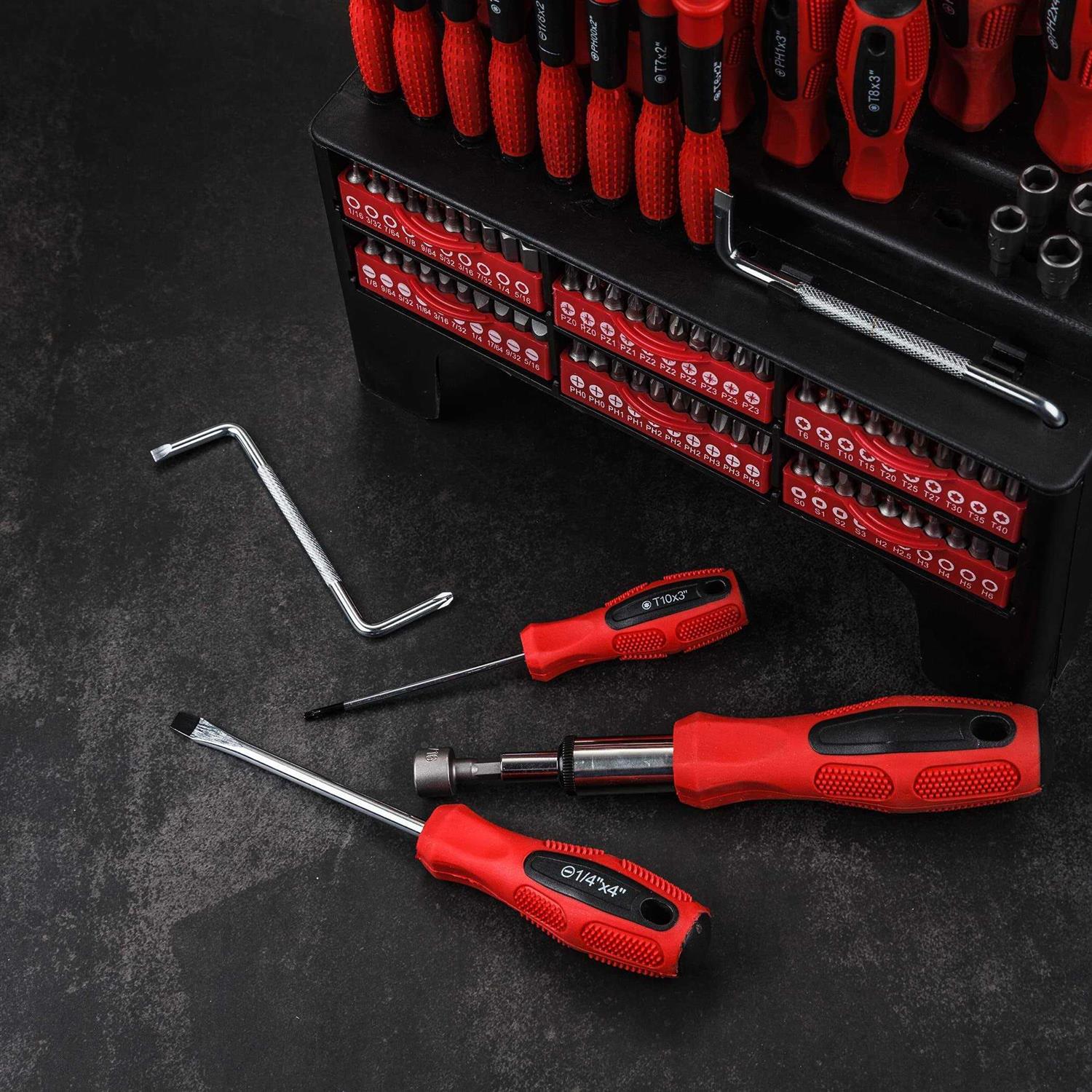 Cartman 100-Piece Magnetic Screwdriver Set with Plastic Racking, Precision Screwdriver, Bonus Magnetizer Demagnetizer and Magnetic Bowl