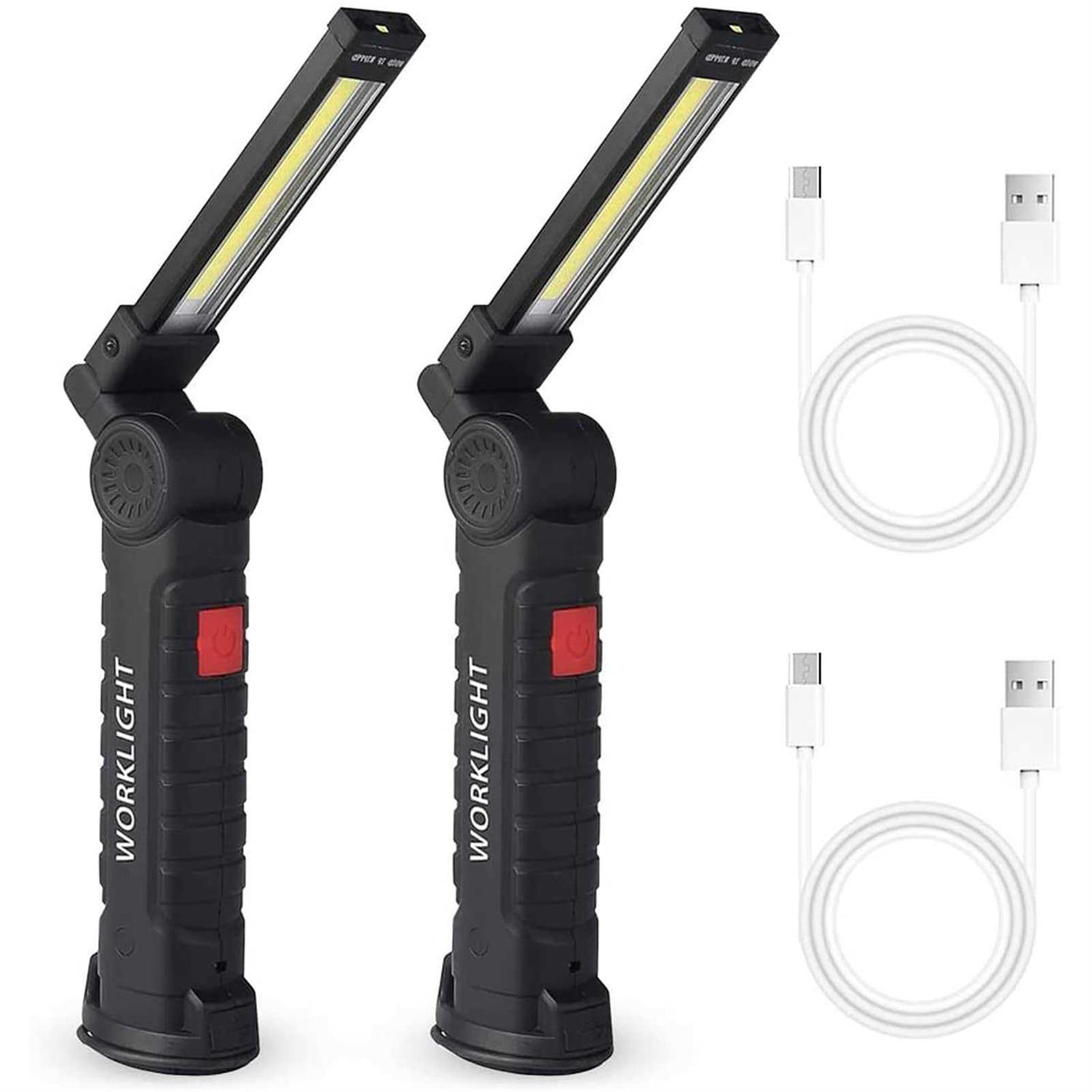 2Pack LED Work Lights, USB Rechargeable COB Light with Magnetic Base 360°Rotate and 5 Modes