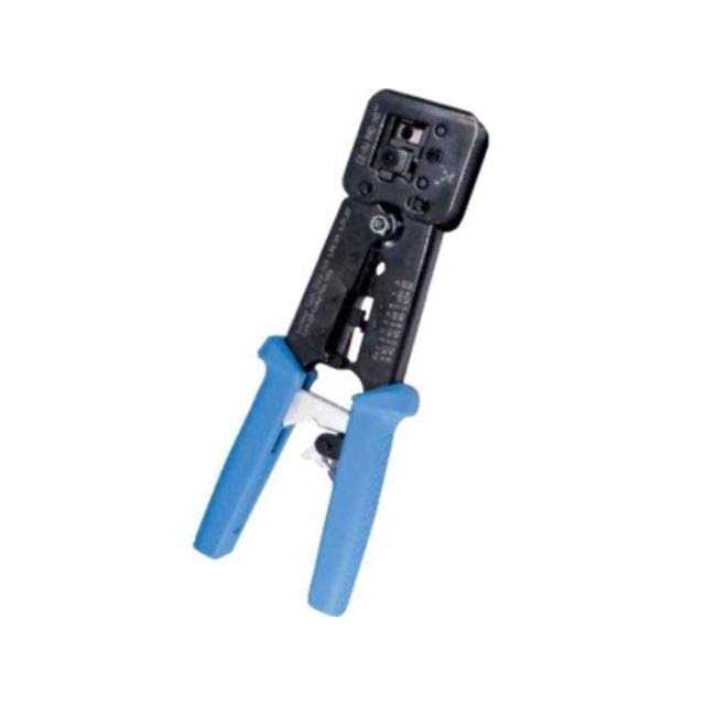 The new EZ-RJPRO HD Crimp Tool is designed for the professional installer providing a ratcheted, high leverage, ultra stable platform for consistent, repeatable terminations. This heavy duty tool is the perfect solution when working with high performance, larger OD cables that are tougher to terminate due to larger wire gauges, thicker, harder insulation on the conductors and pair separating splines. Not only will you overcome these connectivity obstacles but you can be assured that every termination will meet FCC specifications. Compatible with all EZ-RJ45 and EZ-RJ12/11 connectors as well as all standard modular plugs, except AMP. Zero flex frame prevents torque loss during the crimping cycle. Tool steel die head assembly provides 360 degree of connector support during crimp. Clean, ultra flush trim on the EZ-RJ45 extended conductors. Expanded surface area on contact drivers delivers full, uniform crimp force. Built in wire cutter and strippers.