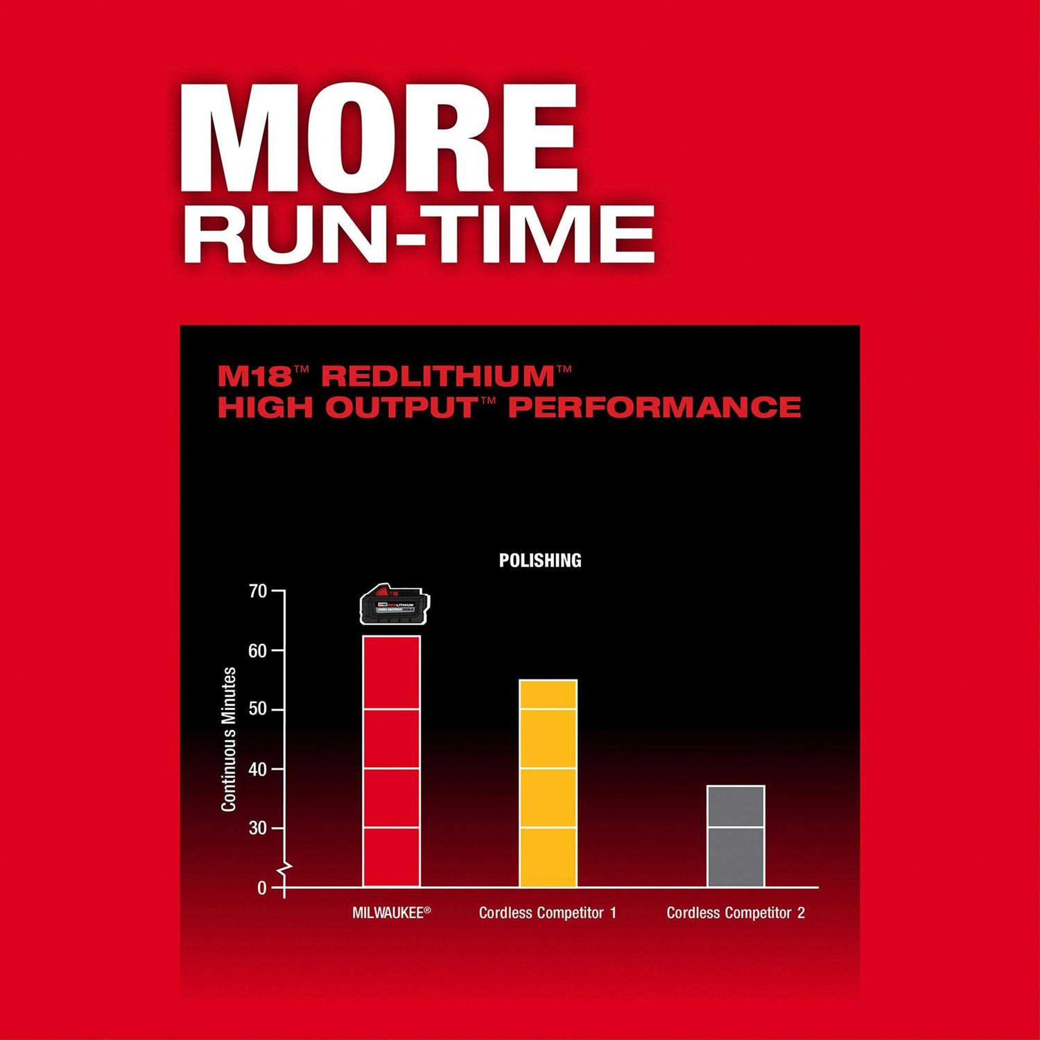 The Milwaukee M18 FUEL red/black random orbital polisher is easy to use. Most of the items in this category have a maximum RPM. The maximum RPM is designated for both safety and as the upper limit for performance. In this case the maximum RPM is 5100. The item is li-ion battery powered. Includes (1) M18 FUEL 15mm Dual Action Random Orbit Polisher.