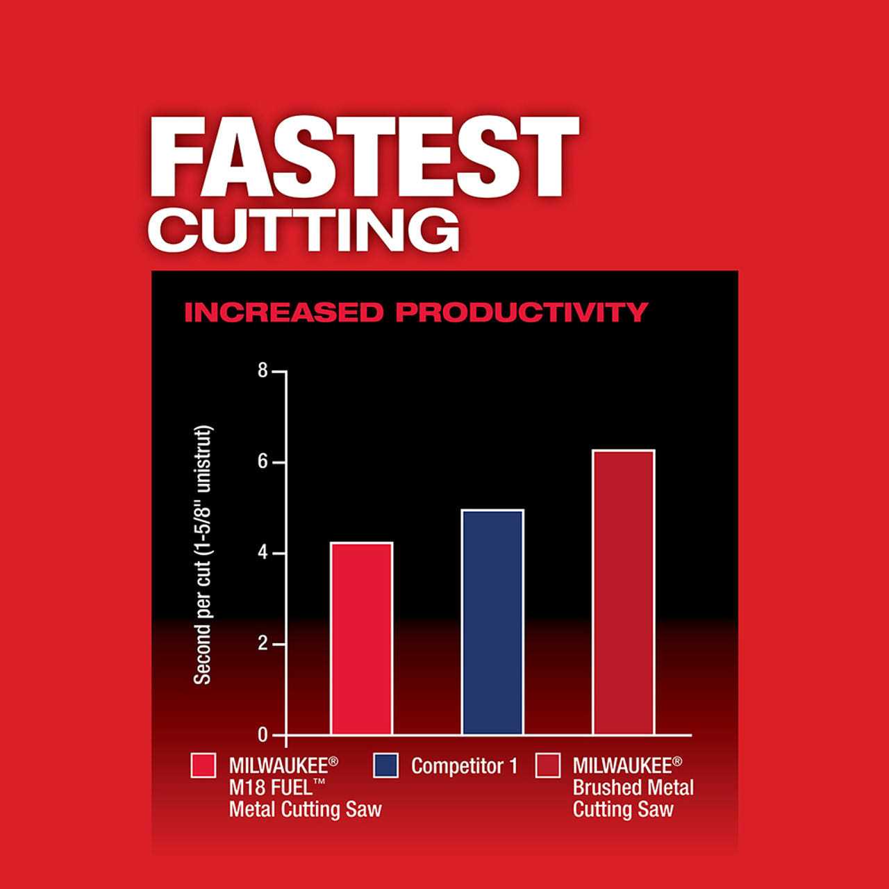 - Brushless motor has no wearable components delivering longest tool life and, with 3,900 RPMs, delivers the fastest cutting metal cutting saw