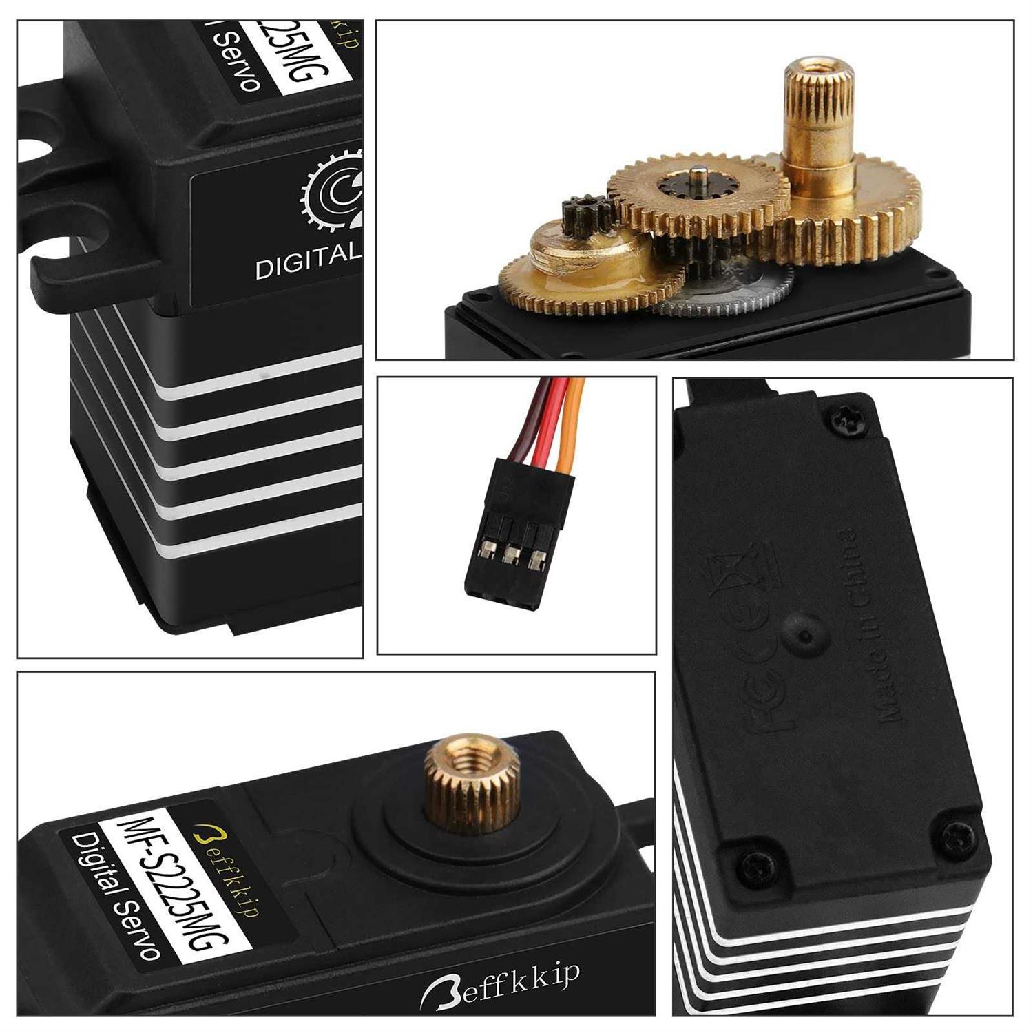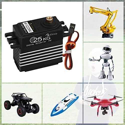 NEW MODEL: DS3225MG 25kg waterproof digital servo. Can be widely used for robots, mechanical arms, climbing cars, remote control boat, remote control aircraf etc. HIGH PERFORMANCE: Equipped with high precision potentiometers and high-resolution digital chip, ensure stable performance, fast response, strong anti-interference ability, low noise, fast heat dissipation. LARGE TORQUE: Maximum torque can up to 25kg.cm (6.8V) HIGH QUALITY: Waterproof rubber seals screws, made of first-grade material ensure the longevity of the products. High-precision metal gear with hard anodizing for better accuracy and longer service life. CNC aluminium middle shell enhances heat dissipation and ensures the servo motor can work well. HIGH ROTATION: 180 degree rotation. Controllable angle range from 0 to 180 degrees, excellent linearity, precision control. Can be rotated within 360 degrees when power off, perfect for robot joint activities.