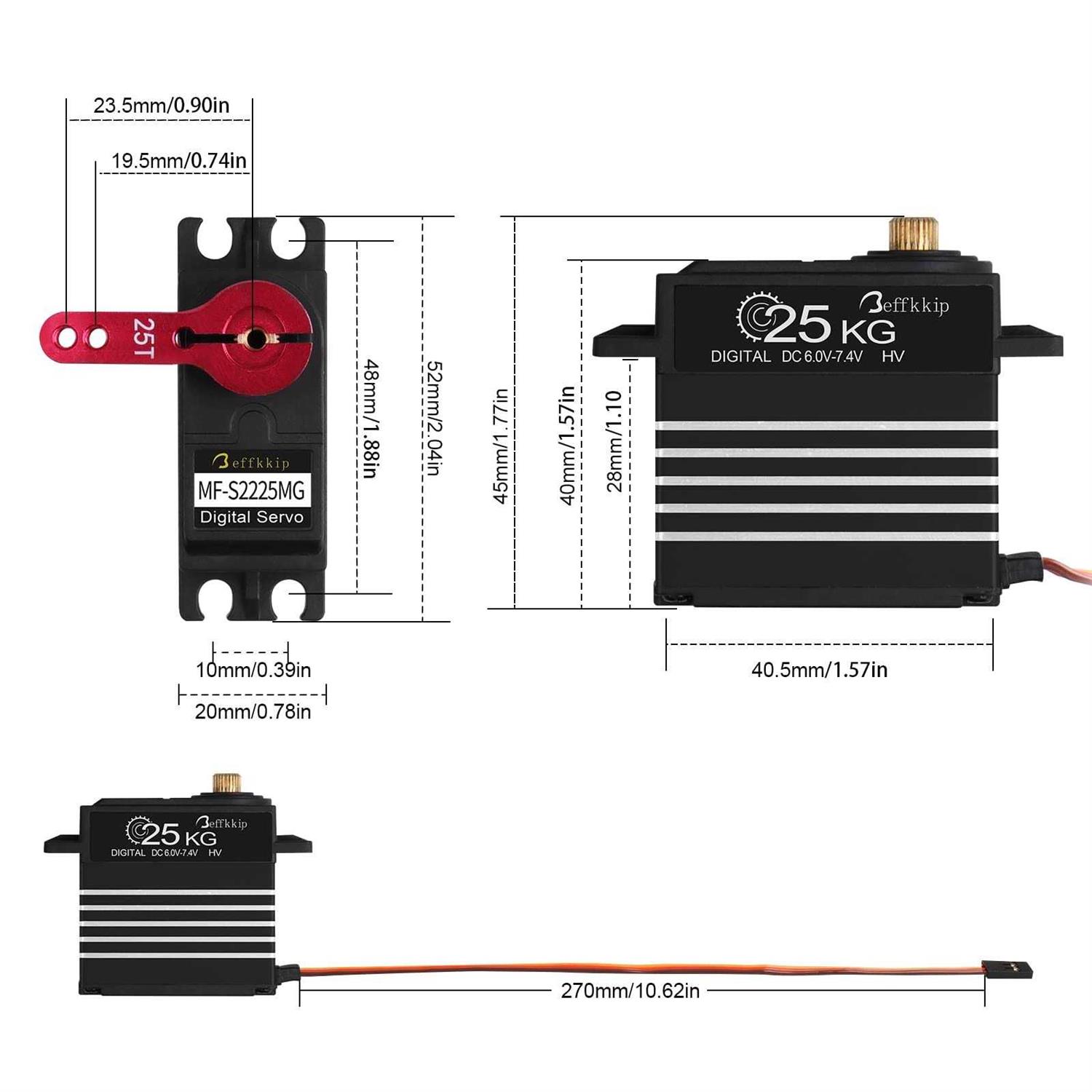 2Pack 25kg Digital Servo High Torque Full Metal Gear Waterproof with 25T Servo Arm for RC Car Crawler Robot Control Angle 180°