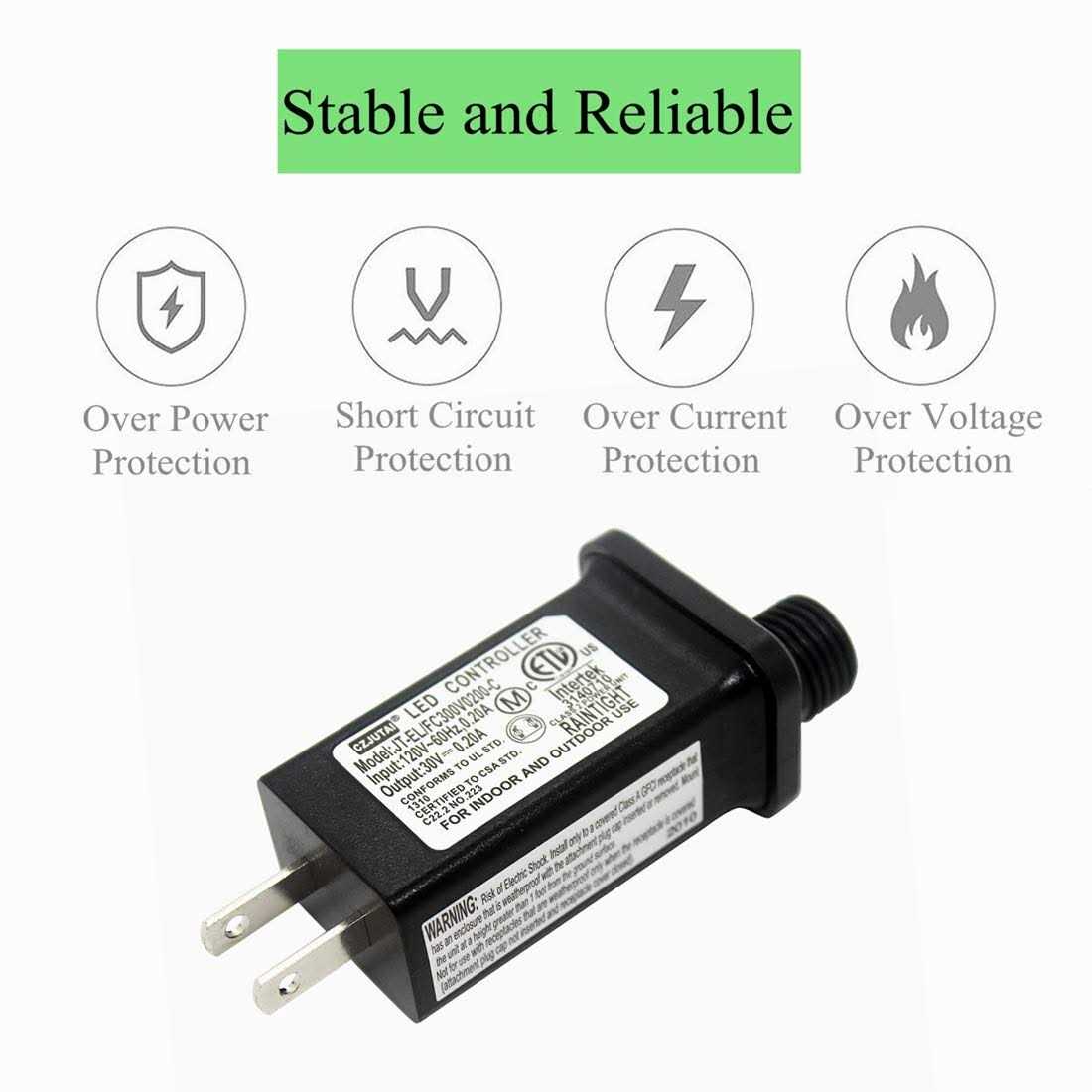 30V LED Controller with 8 Modes, JT-EL/FC300V0200-C Class 2 Power Supply Multifunctional LED Transformer, Low Voltage Transformer US Plug for LED