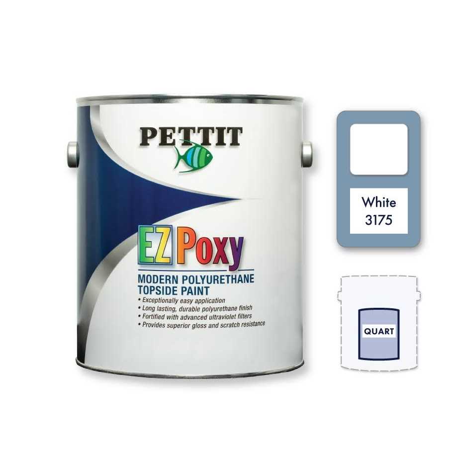 Easypoxy is a highly rated, one-part polyurethane topside paint improved by the addition of silicone for a brilliant shine and easy brushability. It also contains ultraviolet filters which enhance the already superior gloss retention and durability of polyurethane. This results in a topside finish that is exceptionally easy to apply and produces a lasting gelcoat-like brilliance, with a minimum of effort. Easypoxy is available in white and twenty-five popular topside colors.