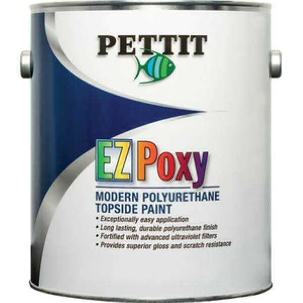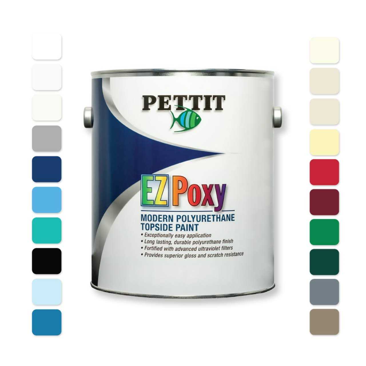 Easypoxy is a highly rated, one-part polyurethane topside paint improved by the addition of silicone for a brilliant shine and easy brushability. It also contains ultraviolet filters which enhance the already superior gloss retention and durability of polyurethane. This results in a topside finish that is exceptionally easy to apply and produces a lasting gelcoat-like brilliance, with a minimum of effort. Easypoxy is available in white and twenty-five popular topside colors.