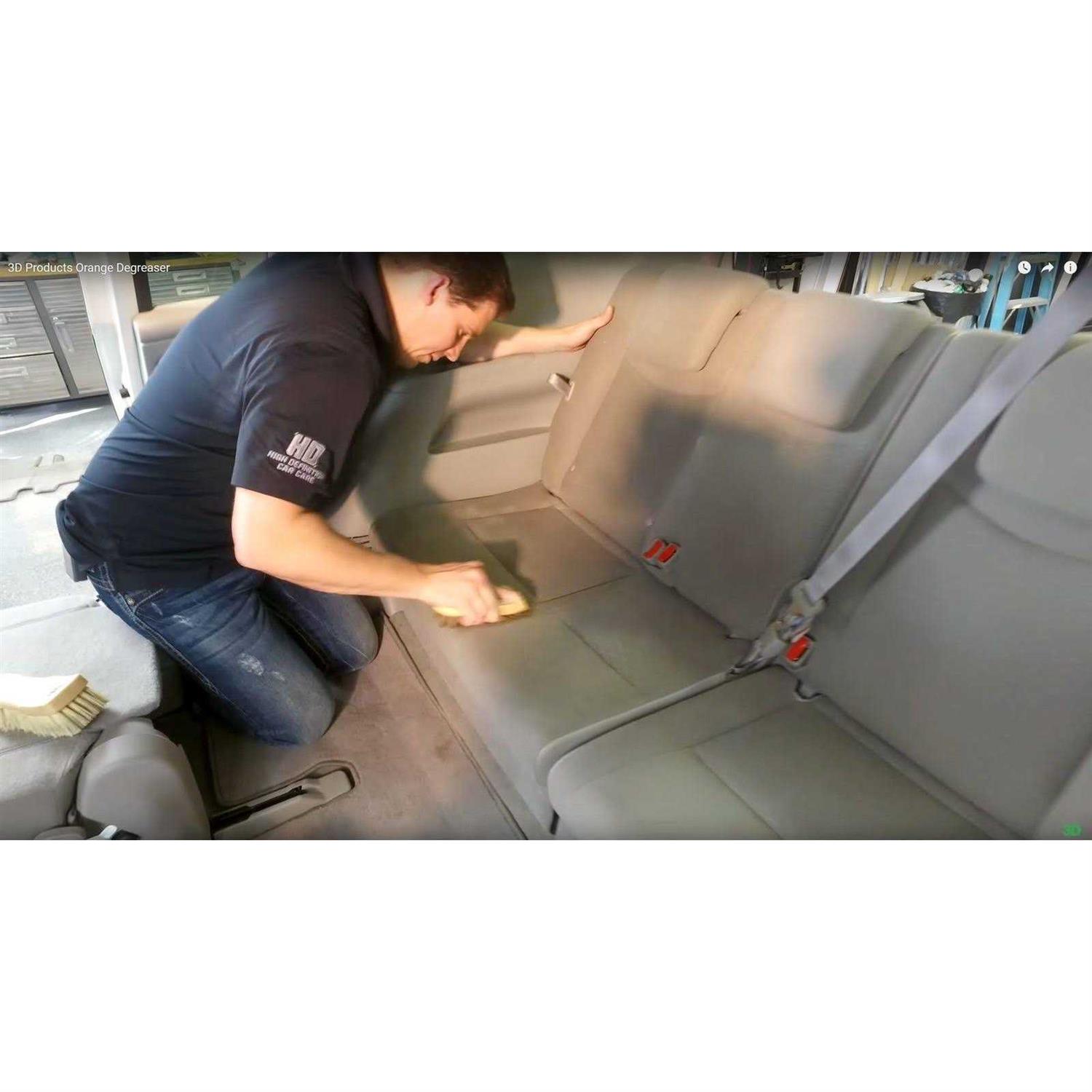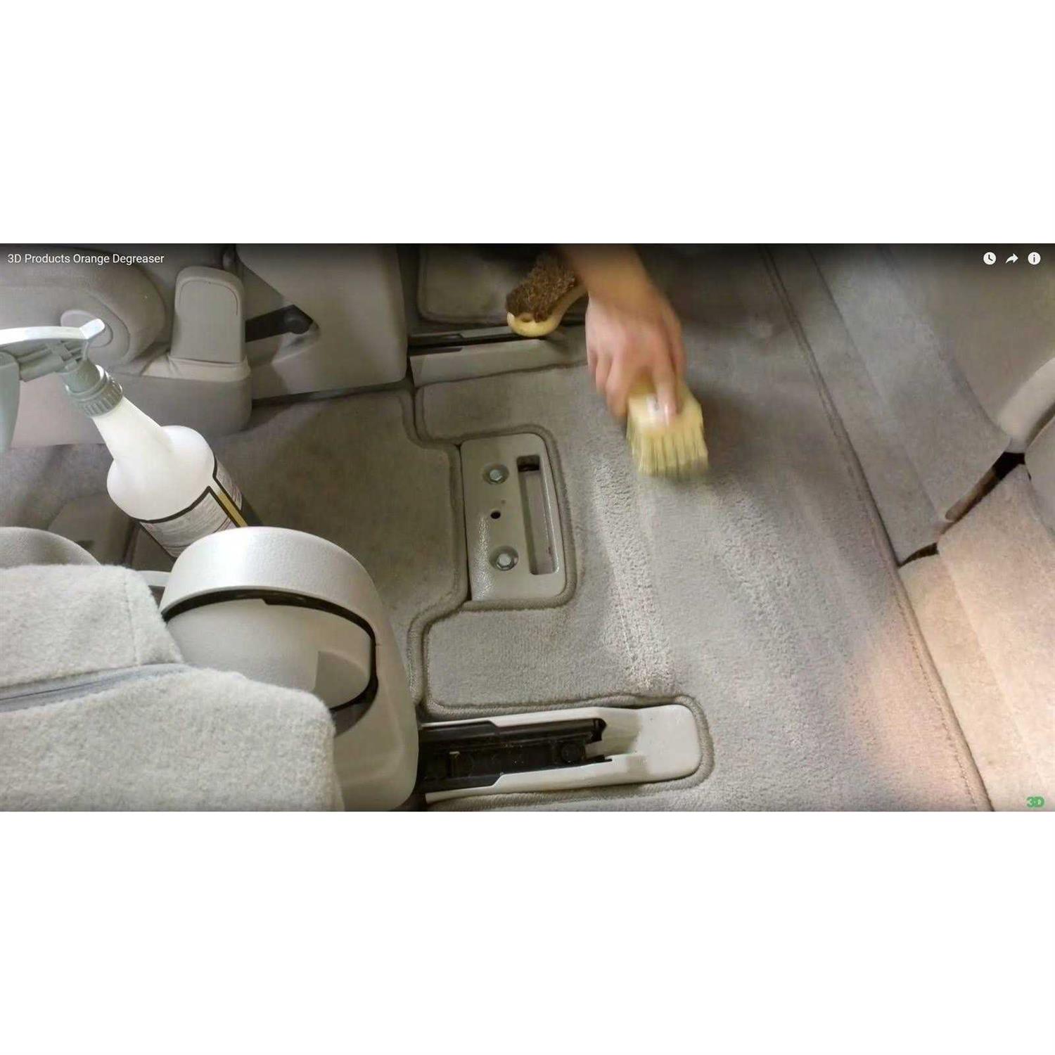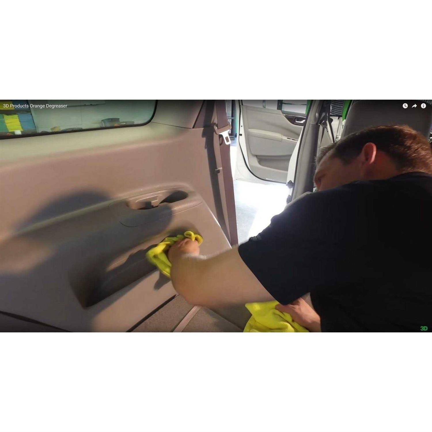 Orange Degreaser is an interior and exterior organic cleaner made with a natural organic citrus called D-limonene oil that helps remove tough stains, grease, oil, dirt and odors. This is the ultimate cleaner that is excellent for automotive, janitorial and home use. Orange Degreaser is VOC compliant, Green and Biodegradable. This product works great with a hand brush or a microfiber towel. Directions: Orange Degreaser can be diluted 4 to 1 for the full strength exterior cleaning degreaser and 10 to 1 for a lighter duty interior cleaning degreaser. Spray lightly covering any surface like carpets and fabrics seats and scrub with a brush or spray a micro fiber towel wipe down your dash boards, steering wheels, door panels, and leather or vinyl seats. Since this product is a degreaser, be sure to completely remove it from any surface where it was applied. You can use a a damp micro fiber towel and then wipe surfaces dry with a clean dry cloth. Restore moisture and re-condition leathers, vinyls and plastics with 3D LVP Conditioner.