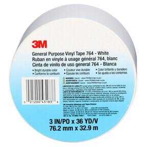 3M General Purpose Vinyl Tape 764, White, 3 in x 36 yd, 5 Mil
