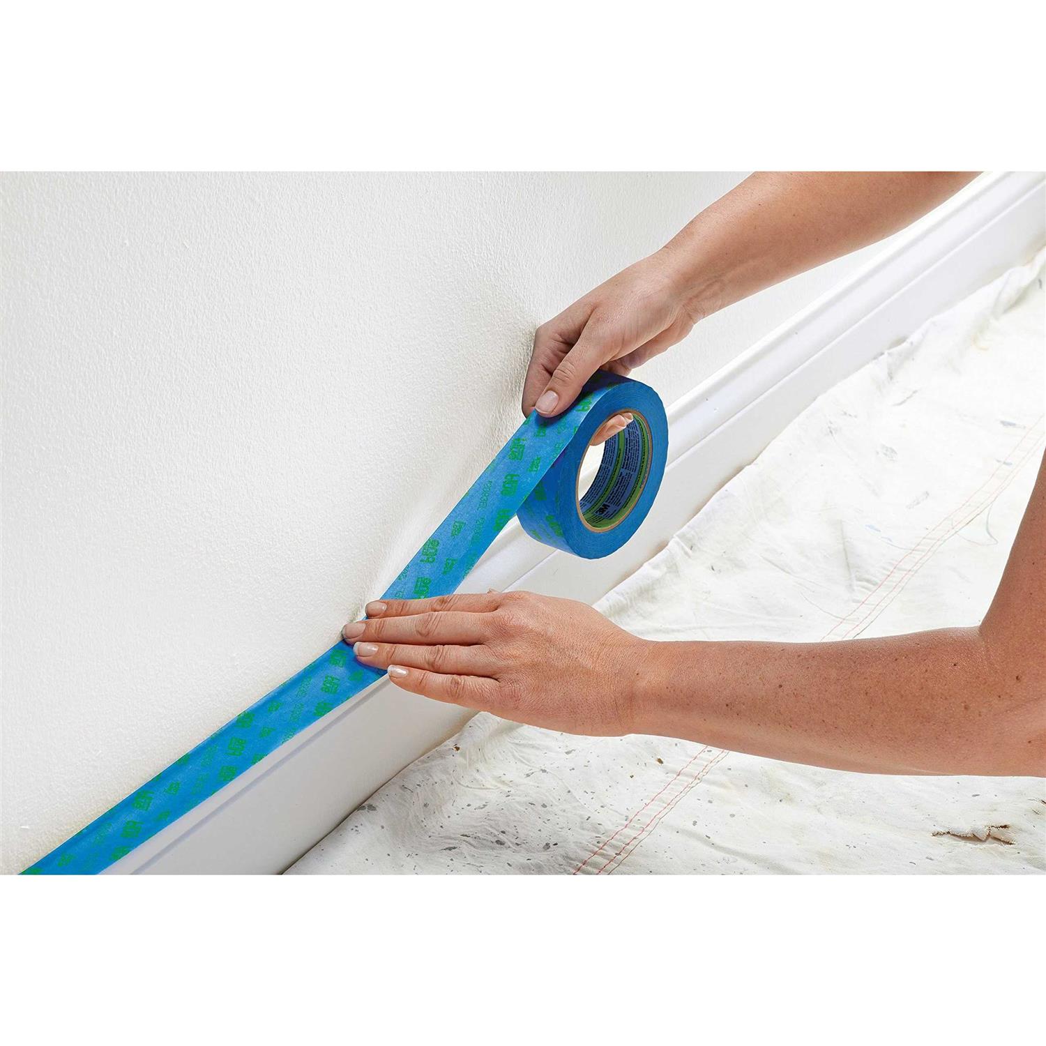 Prep like a pro before painting with the ScotchBlue painter’s tape designed for trim and baseboards. It allows you to achieve extra sharp paint lines when used on baseboards and trim, metal, and glass. A clean removal with no surface damage is possible within 14 days following the application.It can be used both indoors and outdoors. This tape features a medium adhesion level, the Advanced Edge-Lock technology, and UV resistance. It is 1.4″ (36 mm) wide and 60 yd (55 m) long.