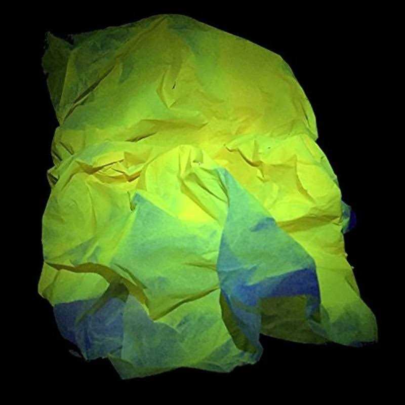 This kit has 5 pieces of the MEL-BL (Micro Effects Light, Blacklight) that operates from a 9V battery with included battery clip that has a DC barrel connector plug that attaches to the light body. These micro effects lights use a 405mm high output violet LED with a narrow spotlight pattern. These lights provide for a strong glow of ultraviolet fluorescent paints in dark settings. The violet 405nm wavelength light is at the edge of the visible light spectrum just outside of the UVA ultraviolet energy band. This wavelength allows a high amount of violet light output that works well with many fluorescent materials such as paints, tapes, and inks to produce a strong glow. The black plastic body of the micro effects light is textured and can be adhered to surfaces with hot glue or gaffers tape for building props and scenery. The light uses a common 2.1mmx 5.5mm DC barrel connector. Operating time from a new 9V battery is typically greater than 24 hours. The violet LED black light projects a beam of light that is narrow focused and can produce a glow of various materials at a distance of several feet in a dark room. The MEL-BL (Micro Effects Light, Blacklight) is a professional use prop and scenery lighting device. The MEL-BL can be operated from 12 volts DC which provides a slight increase in light output but reduces overall life longevity of the light. These 405nm violet lights have no visible white light glow often found with 365mm LED ultraviolet sources. Uses include: themed entertainment projects Illuminate fluorescent painted props viewing UV invisible ink lighting fluorescent gaffers tape checking UV hand stamp inks stage props and scenery theatrical costumes lighting decorative fluorescent papers stage markers The additional images show the 405nm LED micro effect blacklight illuminating, pink, green, orange, and yellow florescent spray paint on tissue paper from a distance of about 2 feet.