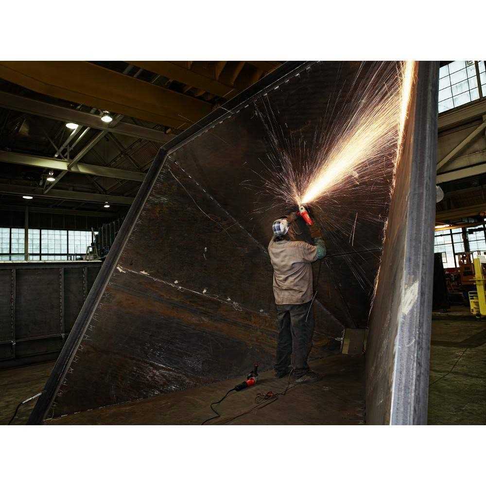 The 13 Amp 6″ Small Angle Grinder (Paddle, Lock-On) delivers up to 30% more durability and power than the competition. With a 2,100 MWO motor that powers through the toughest jobs, the 6161-30 is the perfect match for industrial users. Milwaukee’s Electronic Advantage includes Overload Protection to maximize motor life, an Electronic Clutch that extends tool life and helps prevent bind-up, Line Lock-Out that prevents automatic start-up after power loss, and Soft Start. Constant Power Technology enables the grinder to maintain speed under load for unmatched performance and productivity. Featuring a 100% tool-free design, this Grinder allows the user to change all accessories, including hubbed product, without a wrench. In addition, the tool-free, burst resistant, adjustable guard allows users to make quick guard installations and adjustments. The 13 Amp 6″ Small Angle Grinder (Paddle, No-Lock) delivers up to 30% more durability and power than the competition. With a 2,100 MWO motor that powers through the toughest jobs, the 6161-31 is the perfect match for industrial users. Milwaukee’s Electronic Advantage includes Overload Protection to maximize motor life, an Electronic Clutch that extends tool life and helps prevent bind-up, Line Lock-Out that prevents automatic start-up after power loss, and Soft Start. Constant Power Technology enables the grinder to maintain speed under load for unmatched performance and productivity. Featuring a 100% tool-free design, this Grinder allows the user to change all accessories, including hubbed product, without a wrench. In addition, the tool-free, burst resistant, adjustable guard allows users to make quick guard installations and adjustments.