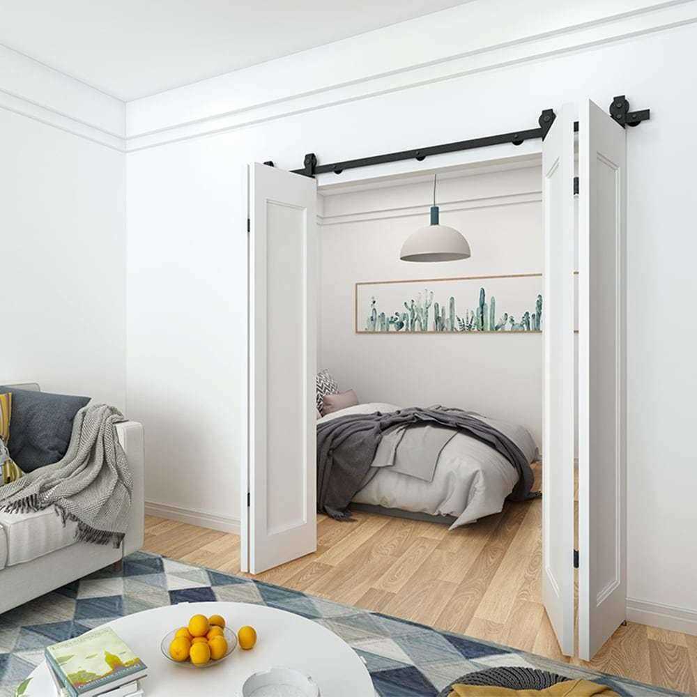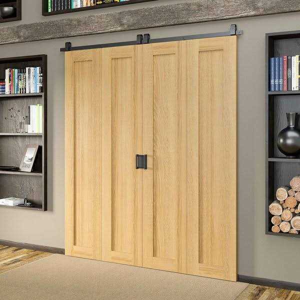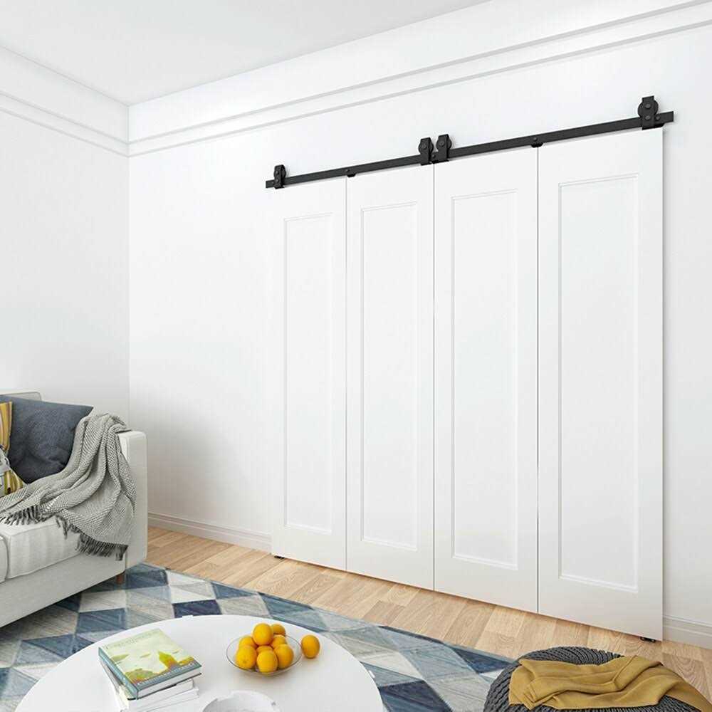 75 in. Top Mount Bi-Fold Sliding Double Barn Door Hardware Quiet Glide