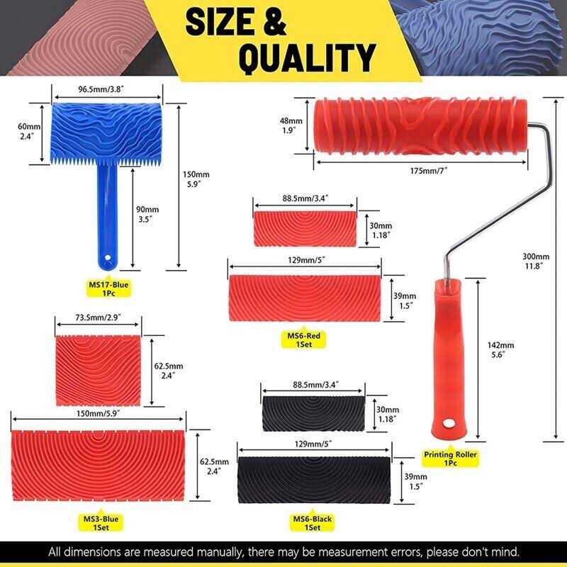 8 Pcs Wood Graining Painting Tool Set, Rubber with Handle, for DIY, Size: Large, Other