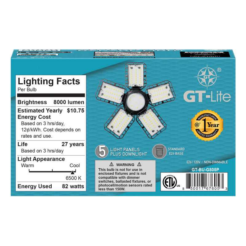 8000 Lumen Adjustable 5-Panel LED Garage Light