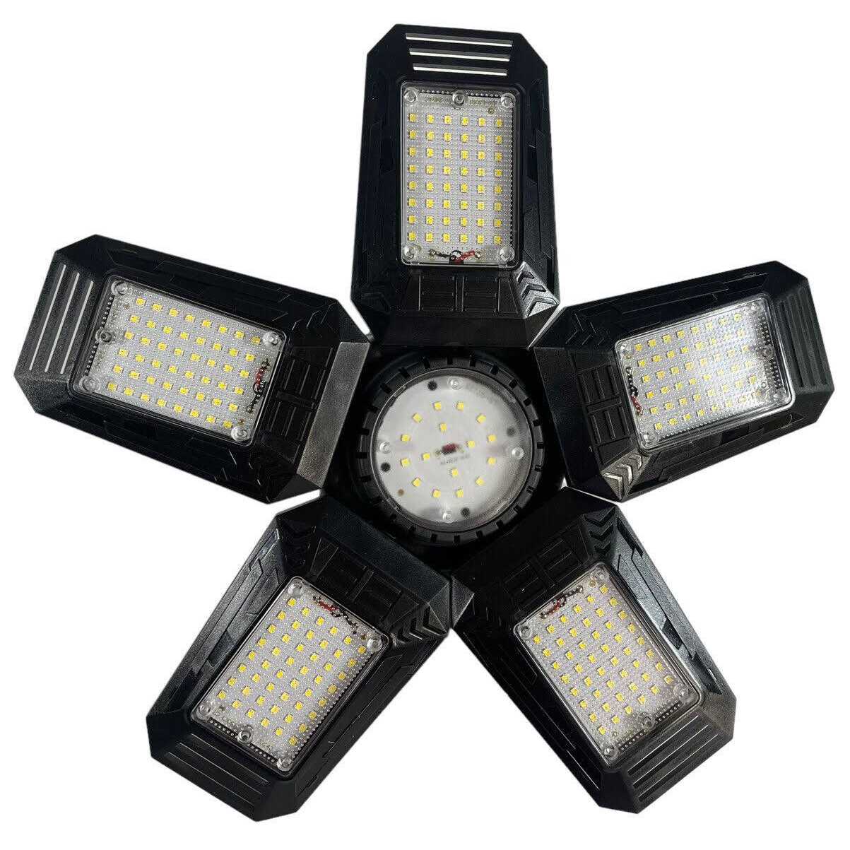 Open box light in New Condition. See photos. Led Garage Lights with 5-leaf garage light comes along with 240 pieces of high quality LED lights, total 100W produce 100 lumens per watt, up to 16,000 lumens. In addition, garage led light provides 6500K daylight source and CRI> 80Ra color rendering index. Making your garage or workbench looks very good and bright. It is the best choice replacing old garage light! Every dark corner can be brightly lit up by 5 adjustable panels.Deformable Adjustable Light & Easy To InstallEach Panel Can be adjusted from 0 to 90 as you want ; garage light with E26 lamp holder, It is simple and convenient to install. No tools, no wiring, Just screwing in a base E26 or E27, suits for anywhere you want to light up.Durable & Long Service Life- Garage lights ceiling led made of stable material, can fireproof, high temperature resistant,excellent electrical insulation , and built-in super large heat sink, big hollow design to ensure faster and effectively dissipates heat; Up to 60,000H lifespan. You can use it for more than 10 years if you light it up 8 hours per day.